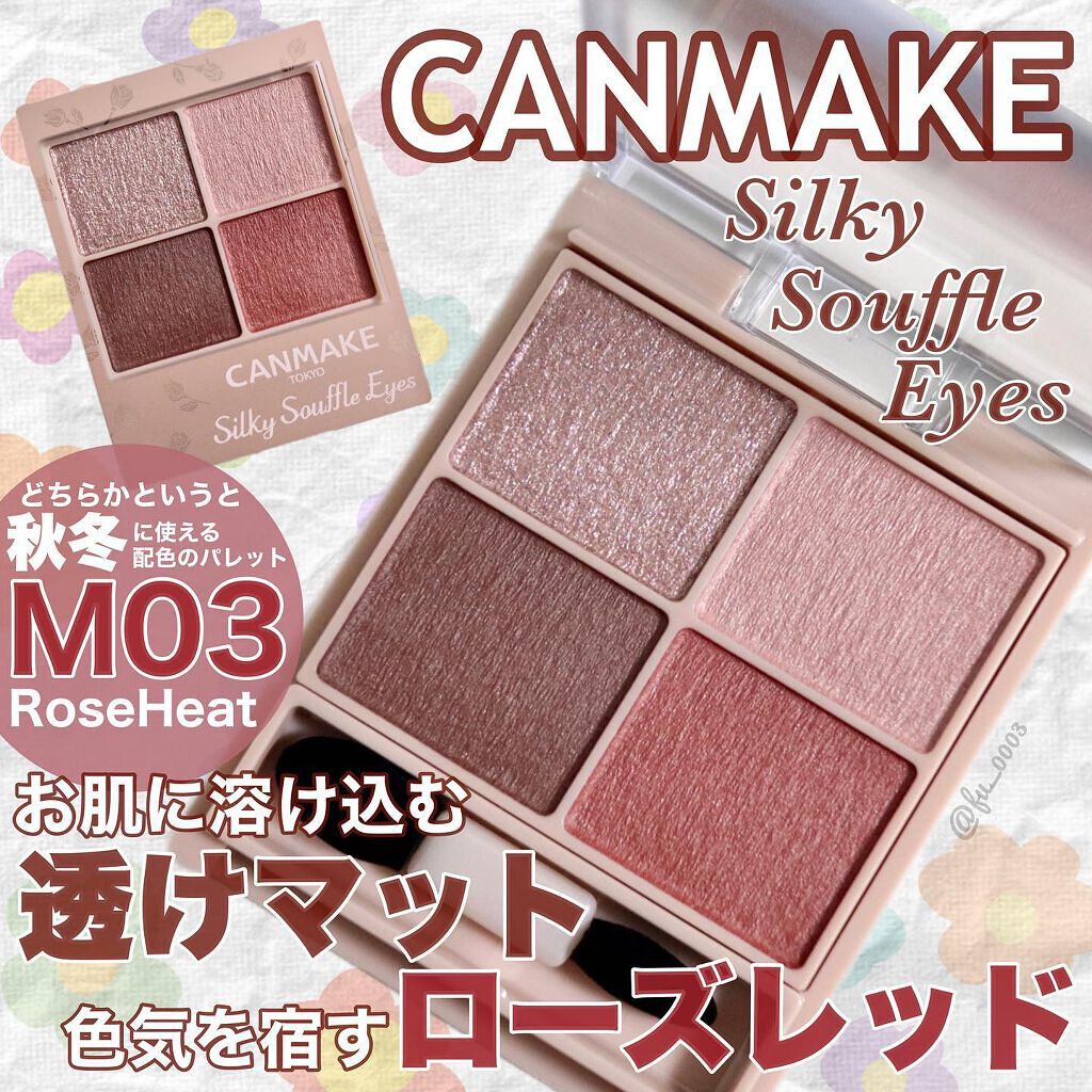 キャンメイクシルキースフレアイズマットタイプM04キューピッドペタル¥825◇質感(マット3、小粒ラメ1)質感はマットですがふわっとしていて透け感があるので色を重ねても重くなったり濁ったりしないのが特徴です◎ラメは小粒ですが思った以上にキラッ...