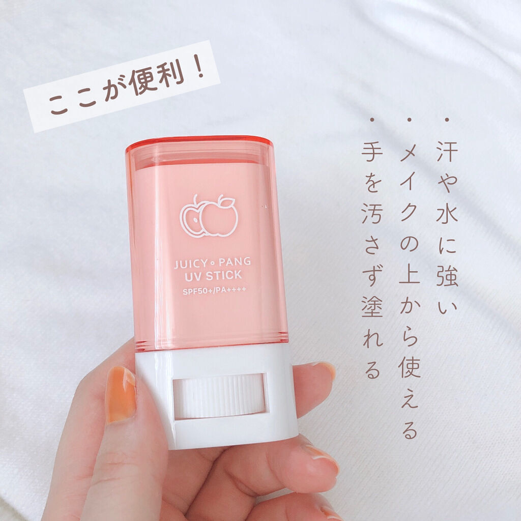 - 選べる3種の「香り」と「カラー」でジューシーな果実感が楽しめるUVスティック。 SPF50+/PA++++の国内最高基準値。 撥水ベールにより汗水に強い高い撥水力を実現。 透明スティックだから衣服や手を汚さず、白浮きしにくく素肌感を残したナチュラルなツヤ肌へと導きます。 さらさらオイルが配合されていることにより、摩擦の少ないマイルドタッチでなめらかな塗り心地。 ベタつきやきしみを感じにくい使用感が特徴です。 美容保湿成分ナイアシンアミドや、各種ごとに異なる果実由来の保湿成分を配合。 コンパクト設計のため持ち運びがしやすく、お出かけ先など気になったらどこでもUVケアが可能。 さらにメイクの上からも使え、日中の塗り直しにも便利です。