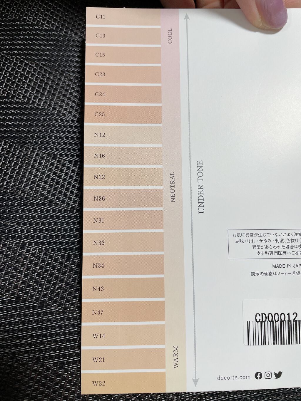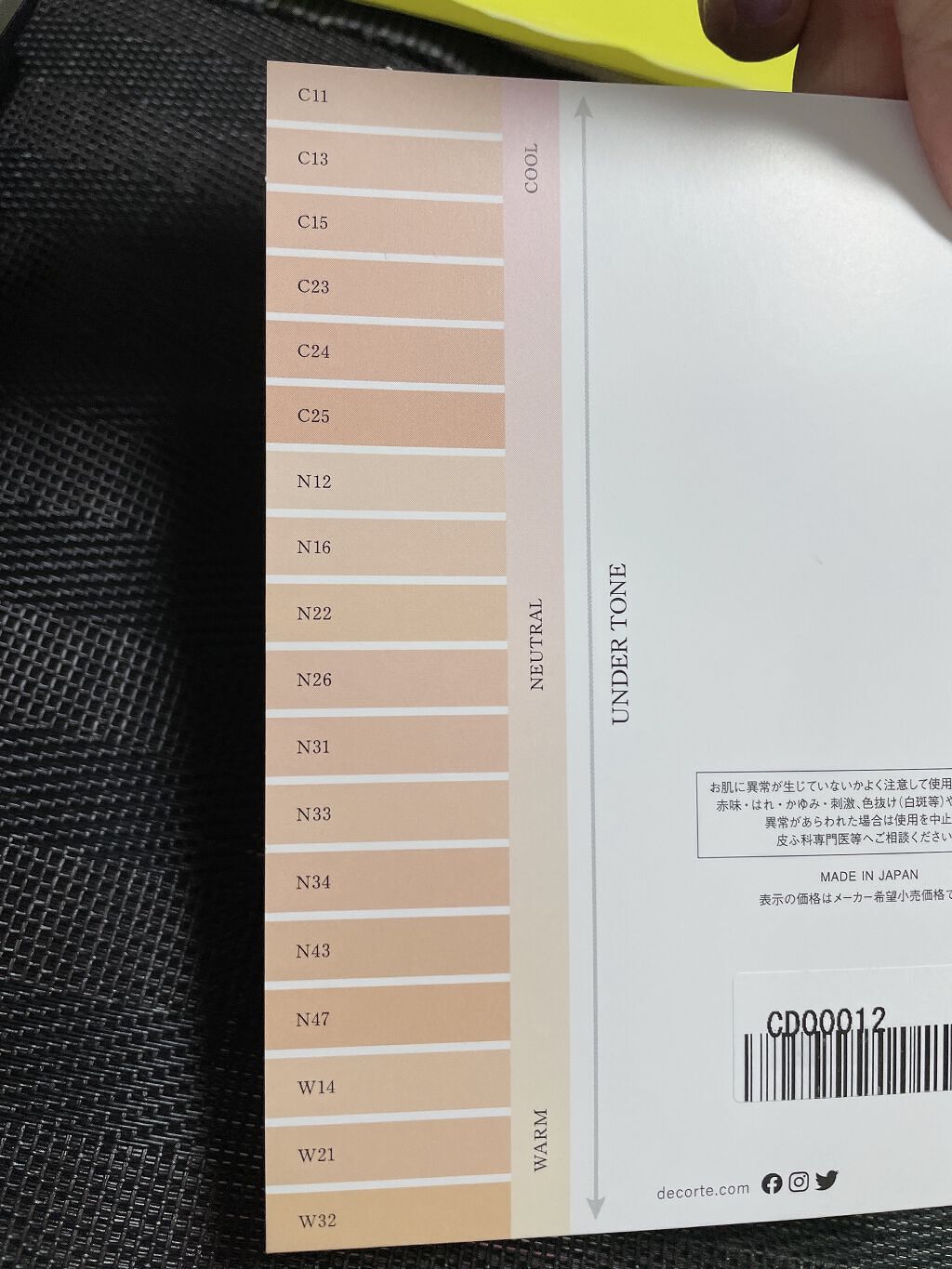 - <C11> 水、シクロメチコン、タルク、ジメチコン、エタノール、トリフルオロアルキルジメチルトリメチルシロキシケイ酸、メトキシケイヒ酸エチルヘキシル、イソノナン酸イソトリデシル、安息香酸アルキル(C12-15)、ビス(PEG/PPG-14/14)ジメチコン、シリカ、アストロカリウムムルムル種子脂、シロキクラゲエキス、ゼニアオイエキス、ダマスクバラ花エキス、テトラヘキシルデカン酸アスコルビル、トコフェロール、ヒアルロン酸Na、マツリカ花エキス、レモン果実エキス、BG、BHT、PEG-9ポリジメチルシロキシエチルジメチコン、(アクリレーツ/アクリル酸エチルヘキシル/メタクリル酸ジメチコン)コポリマー、(チタン/酸化チタン)焼結物、(フッ化/水酸化/酸化)/(Mg/K/ケイ素)、キサンタンガム、ジステアルジモニウムヘクトライト、ジフェニルシロキシフェニルトリメチコン、スクワラン、ステアリン酸、トリエトキシカプリリルシラン、ラウロイルリシン、レシチン、塩化Na、含水シリカ、合成フルオロフロゴパイト、酸化スズ、酸化ポリエチレン、水酸化Al、水添ポリイソブテン、麻セルロース、フェノキシエタノール、香料、酸化チタン、酸化亜鉛、酸化鉄 <C13> 水、シクロメチコン、タルク、ジメチコン、エタノール、トリフルオロアルキルジメチルトリメチルシロキシケイ酸、メトキシケイヒ酸エチルヘキシル、イソノナン酸イソトリデシル、安息香酸アルキル(C12-15)、ビス(PEG/PPG-14/14)ジメチコン、シリカ、アストロカリウムムルムル種子脂、シロキクラゲエキス、ゼニアオイエキス、ダマスクバラ花エキス、テトラヘキシルデカン酸アスコルビル、トコフェロール、ヒアルロン酸Na、マツリカ花エキス、レモン果実エキス、BG、BHT、PEG-9ポリジメチルシロキシエチルジメチコン、(アクリレーツ/アクリル酸エチルヘキシル/メタクリル酸ジメチコン)コポリマー、(チタン/酸化チタン)焼結物、(フッ化/水酸化/酸化)/(Mg/K/ケイ素)、キサンタンガム、ジステアルジモニウムヘクトライト、ジフェニルシロキシフェニルトリメチコン、スクワラン、ステアリン酸、トリエトキシカプリリルシラン、ラウロイルリシン、レシチン、塩化Na、含水シリカ、合成フルオロフロゴパイト、酸化スズ、酸化ポリエチレン、水酸化Al、水添ポリイソブテン、麻セルロース、フェノキシエタノール、香料、酸化チタン、酸化亜鉛、酸化鉄 <C15> 水、シクロメチコン、タルク、ジメチコン、エタノール、トリフルオロアルキルジメチルトリメチルシロキシケイ酸、メトキシケイヒ酸エチルヘキシル、イソノナン酸イソトリデシル、安息香酸アルキル(C12-15)、ビス(PEG/PPG-14/14)ジメチコン、シリカ、アストロカリウムムルムル種子脂、シロキクラゲエキス、ゼニアオイエキス、ダマスクバラ花エキス、テトラヘキシルデカン酸アスコルビル、トコフェロール、ヒアルロン酸Na、マツリカ花エキス、レモン果実エキス、BG、BHT、PEG-9ポリジメチルシロキシエチルジメチコン、(アクリレーツ/アクリル酸エチルヘキシル/メタクリル酸ジメチコン)コポリマー、(チタン/酸化チタン)焼結物、(フッ化/水酸化/酸化)/(Mg/K/ケイ素)、キサンタンガム、ジステアルジモニウムヘクトライト、ジフェニルシロキシフェニルトリメチコン、スクワラン、ステアリン酸、トリエトキシカプリリルシラン、ラウロイルリシン、レシチン、塩化Na、含水シリカ、合成フルオロフロゴパイト、酸化スズ、酸化ポリエチレン、水酸化Al、水添ポリイソブテン、麻セルロース、フェノキシエタノール、香料、酸化チタン、酸化亜鉛、酸化鉄 <C23> 水、シクロメチコン、タルク、ジメチコン、エタノール、トリフルオロアルキルジメチルトリメチルシロキシケイ酸、メトキシケイヒ酸エチルヘキシル、イソノナン酸イソトリデシル、安息香酸アルキル(C12-15)、ビス(PEG/PPG-14/14)ジメチコン、シリカ、アストロカリウムムルムル種子脂、シロキクラゲエキス、ゼニアオイエキス、ダマスクバラ花エキス、テトラヘキシルデカン酸アスコルビル、トコフェロール、ヒアルロン酸Na、マツリカ花エキス、レモン果実エキス、BG、BHT、PEG-9ポリジメチルシロキシエチルジメチコン、(アクリレーツ/アクリル酸エチルヘキシル/メタクリル酸ジメチコン)コポリマー、(チタン/酸化チタン)焼結物、(フッ化/水酸化/酸化)/(Mg/K/ケイ素)、キサンタンガム、ジステアルジモニウムヘクトライト、ジフェニルシロキシフェニルトリメチコン、スクワラン、ステアリン酸、トリエトキシカプリリルシラン、ラウロイルリシン、レシチン、塩化Na、含水シリカ、合成フルオロフロゴパイト、酸化スズ、酸化ポリエチレン、水酸化Al、水添ポリイソブテン、麻セルロース、フェノキシエタノール、香料、酸化チタン、酸化亜鉛、酸化鉄 <C24> 水、シクロメチコン、タルク、ジメチコン、エタノール、トリフルオロアルキルジメチルトリメチルシロキシケイ酸、メトキシケイヒ酸エチルヘキシル、イソノナン酸イソトリデシル、安息香酸アルキル(C12-15)、ビス(PEG/P