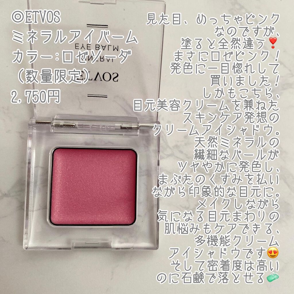 ETVOSエトヴォスミネラルアイバームⅡサーモンベージュETVOSの目元クリームを兼ねたアイシャドウのミネラルアイバームはもう何個リピ買いしたかわからないくらいずーっと愛用してる🥺♡このミネラルアイバームⅡはよりヨレにくくバージョンアップした...