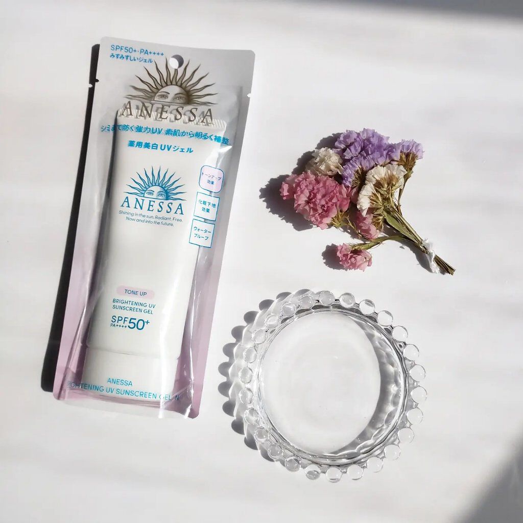 アネッサブライトニングUVジェルN白の薬用美白UVジェル*3クリームタイプほんのりフルーティーフローラルの香りつきなめらかに伸びますスキンケア成分50%配合きしまずしっとりとした使い心地紫外線の気になる季節は乾燥も気になるので...