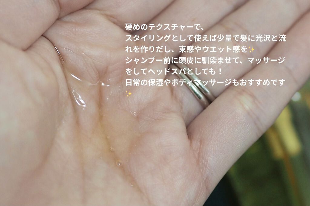 | 重ためなテクスチャーのヘアオイルだけど 仕上がりはまとまるのに軽やか。 | 詳細を見る | |||