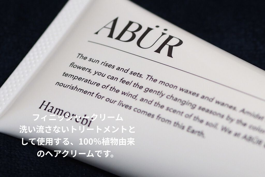 ・〜ABÜR〜・FinisherCream(Shisui/紫水)NOINから発売されたヘアケアブランド「ABÜR」植物由来97%のボタニカルオイルを乳化してスタイリング力を高め、洗い流さないトリートメントとしても使え、ハンド&ボディにマルチに...