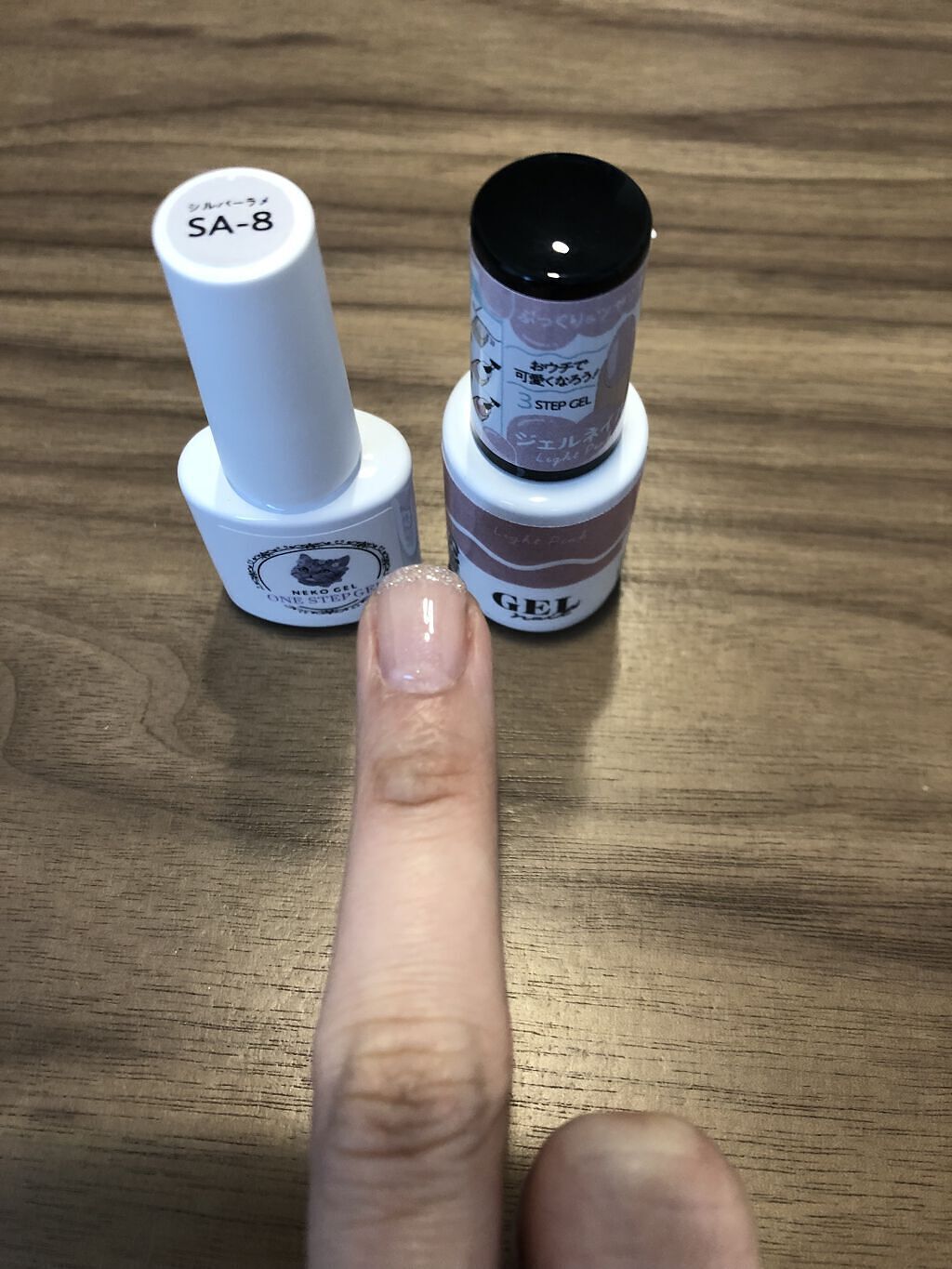 ダイソーのライトピンクはムラになりにくく、もし上手く行かなくても上からラメを重ねるのでセルフジェル初心者さんにもおすすめです!✨ 特にブルベさんにおすすめです! セリアのグリッタージェルもラメがザクザク入っていて、キラキラ輝いて可愛い🤍