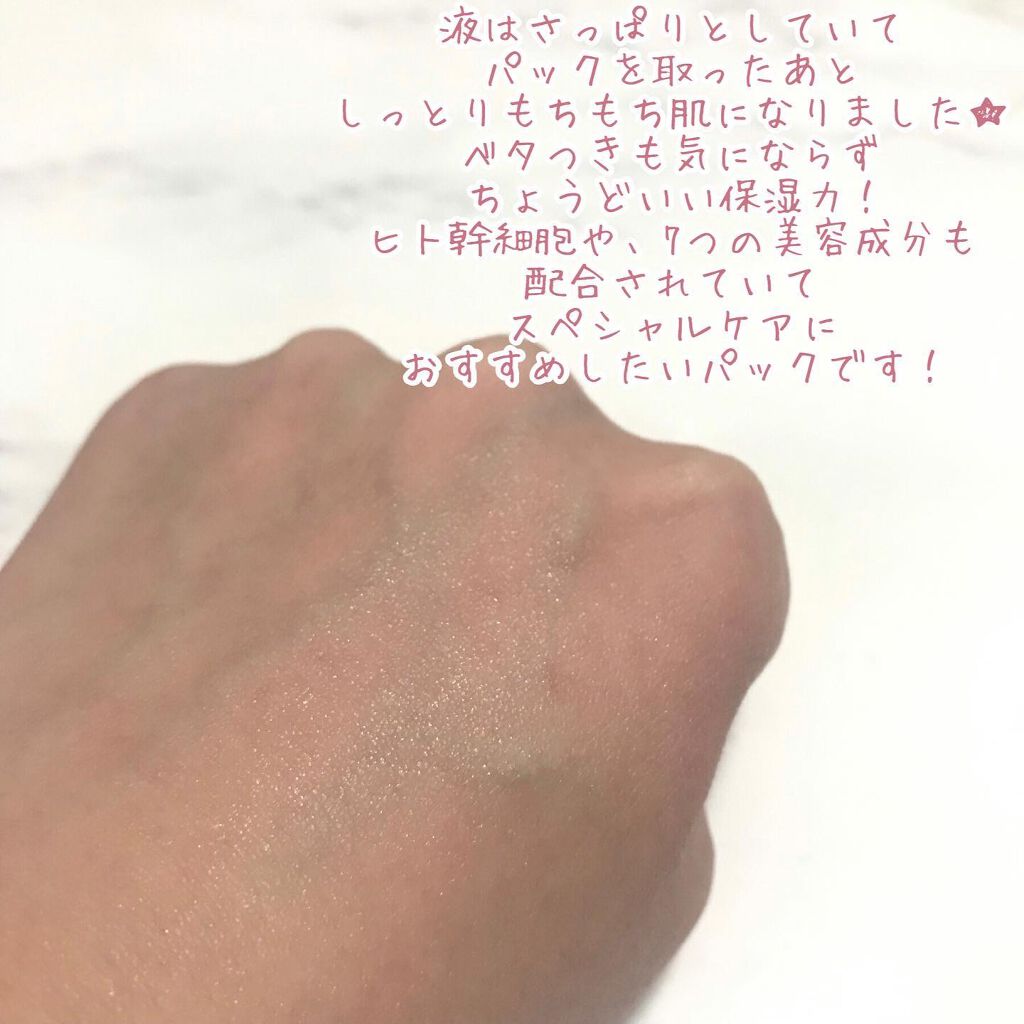 - ヒト幹細胞培養液*と7種類の美容成分を用いた美容液マスクです。 エイジングケア**やスペシャルケアとして、いつものケアにプラス。 ▼こんな方におすすめ▼ ▪キメやハリ、弾力が気になる ▪お肌の乾燥が気になる ▪目元、口元あたりの悩みが増えた ▪肌を整えたい ▪透明感のある肌になりたい ▪お肌の毛穴が目立つ ▪若々しい印象を保ちたい ▪近々大事なイベントがある *ヒト脂肪細胞順化培養液のこと **年齢に応じたお手入れ