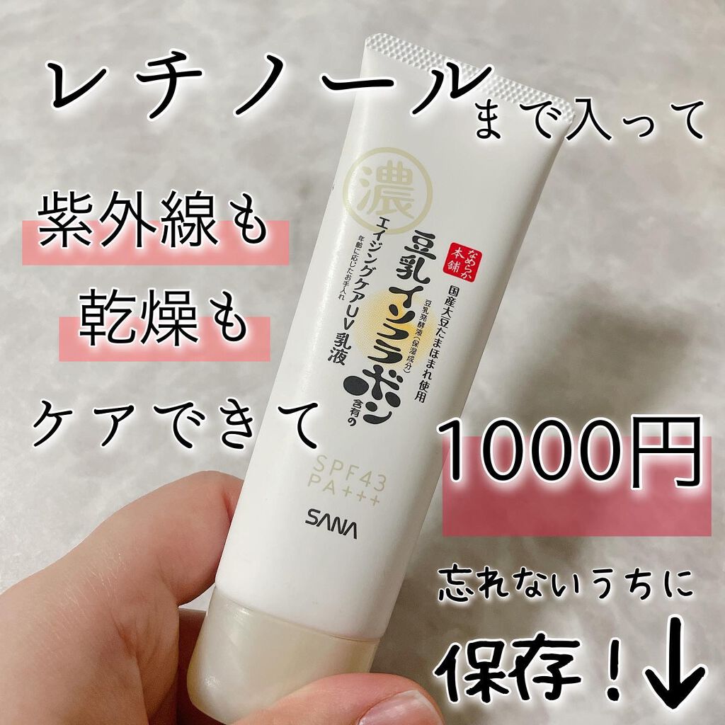 - ほうれい線・小じわのメイクよれが気になる方におすすめの日中用カバーUV 乳液です。リニューアルしたなめらか本舗エイジングケア*1ライン共通の、滋賀県産たまほまれ使用の豆乳発酵液*2とピュアレチノール*2を配合しています。リンクルリフレクト効果で、ほうれい線や小じわを目立たなくし、時間が経ってもメイクよれが気にならない処方を採用しました。お肌にうれしいノンケミカル(紫外線吸収剤不使用)処方で、洗顔後これ 1 つでスキンケアからベースメイクまで完成。 乾燥による小じわを目立たなくします(効能評価試験済み)。 SPF43・PA+++、石けんでオフできます。 *1年齢に応じたお手入れ *2保湿成分