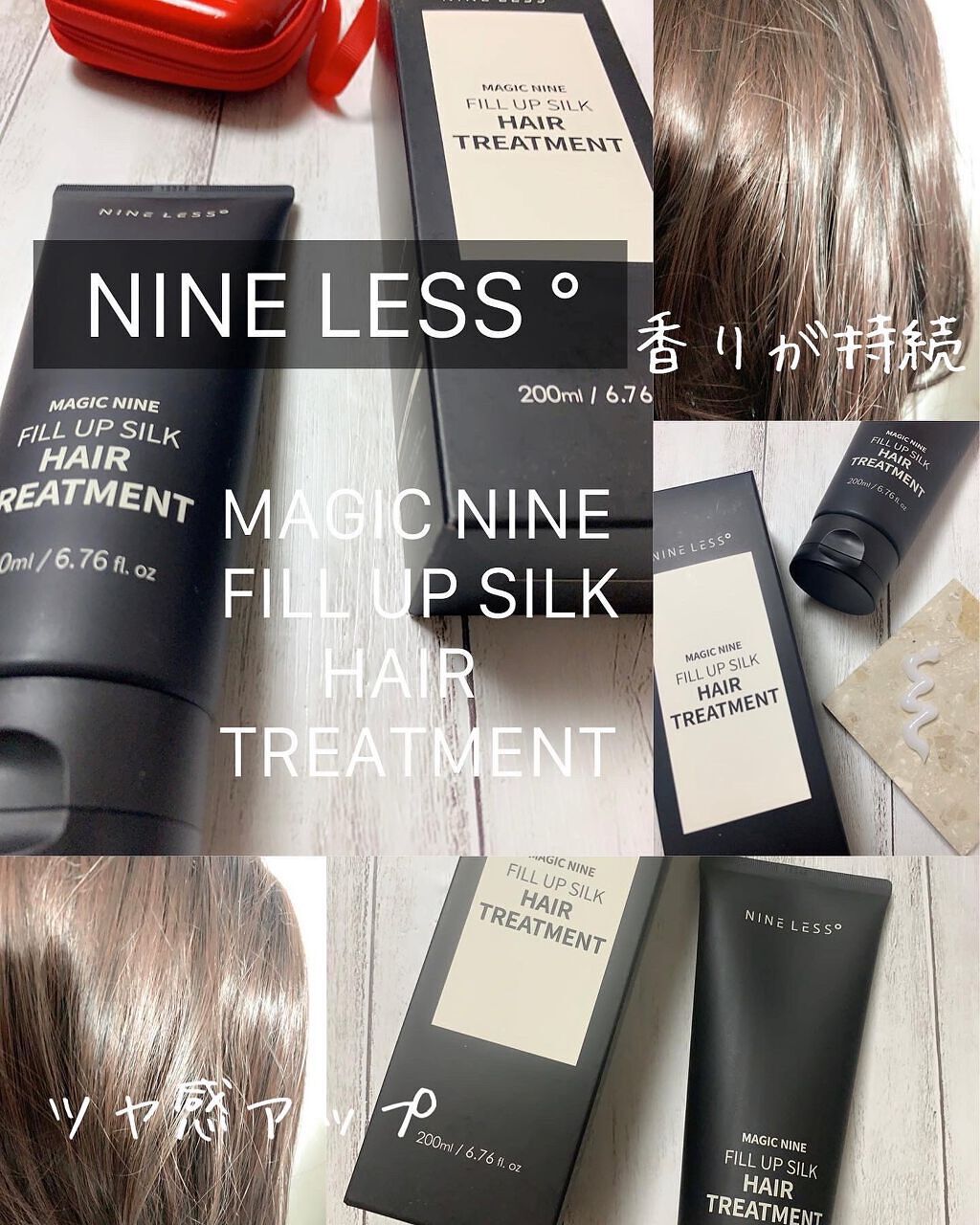 ナインレスマジナインフィルアップシルクトリートメント✨パサついた毛先と、熱から守ってくれるダメージヘア用洗い流さいタイプのトリートメント❣️髪を乾かす前に傷んだ毛先中心に適量を馴染ませてドライヤーで乾かすだけなんだけど、イヤなベタ付き無くて指...