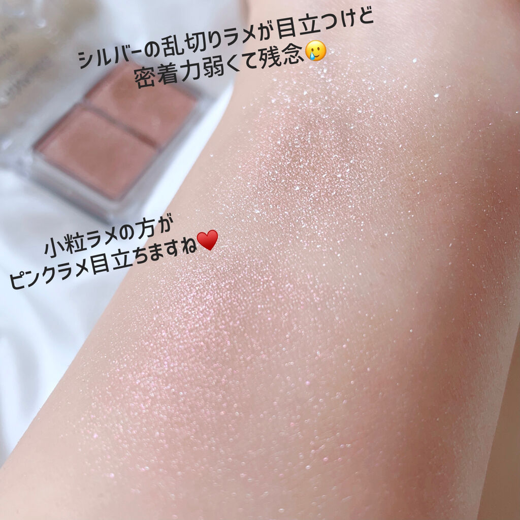 - ベース色が発色せずに、ラメだけをのせられるアイシャドウ。小粒と大粒のラメで、どんなメイクも理想の輝きに調節。「アイシャドウの上に重ねる」「アイシャドウの下に仕込む」「単品で使う」など、お好みで使えます。