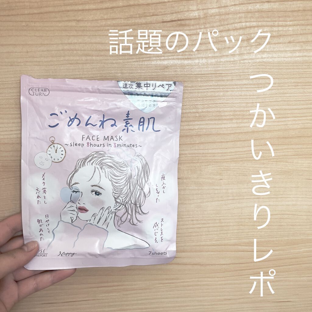 - 【クリアターン ごめんね素肌マスク】 負担をかけて、あれてしまった肌の素肌環境※1をととのえる“速攻集中リペア※2マスク”です。 ① あれがちな肌を素早くコンディションケア! ザクロエキス、桜エキス※3、ウメ果実エキスBG配合し、ゆらぎやすい肌環境をととのえ、肌あれをケアします。また、うるおいケア成分として、ヒアルロン酸、白キクラゲ多糖体BGを配合。外的ストレス※4や不規則な生活の影響を受けやすい肌も健やかでゆらぎにくい肌へみちびきます。 ②敏感肌も使える、弱酸性・低刺激処方 無香料・無着色・無鉱物油・アルコールフリー(エチルアルコール)・パラベンフリー・紫外線吸収剤フリー・シリコーンフリー・パッチテスト済み・アレルギーテスト済み・スティンギングテスト済み・敏感肌自覚者による連用テスト済み(すべての方にアレルギーや皮膚刺激が起きない、刺激感がないというわけではありません。すべての方の肌に合うということではありません。) ③角質ケアもできる!凸凹高密着シート コットン生まれのやわらかな肌触りのベンリーゼを使用。 表面に凸凹のエンボス加工を施しているため、密着性が高く、はがしたマスクでやさしく顔をふきとることで角質ケアもできます。 ※1 うるおい環境のこと ※2 うるおいお手入れのこと ※3 ソメイヨシノ葉エキス、ウメ果実エキスBGはウメ果実エキス・BG(保湿) ※4 乾燥による刺激のこと