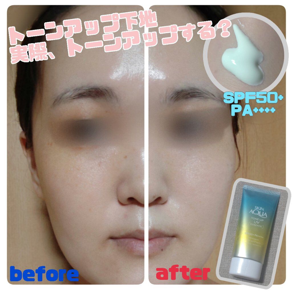 【スキンアクアトーンアップUVエッセンス】★ミントグリーン肌の赤みが気になって、「そうだ!日焼け止めで何とかしよう!」と、というズボラ発想で購入。結果、あんまり赤みカバーできなかったし、乾燥が気になるという本末転倒な結果に、、トーンアップはほ...