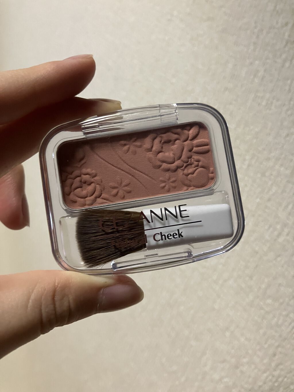色味が絶妙にちょうど良くてかわいい〜🥰 ベージュだけどベージュすぎないから自然に血色感アップ💕 でもピンクすぎないから塗り過ぎ感もなく、めちゃくちゃ馴染みよく顔色良くなります! 粉質も粉飛びしないので良き👍🌟 付属のブラシは小さいながらもチクチクしない使いやすいブラシなので使い勝手も◎