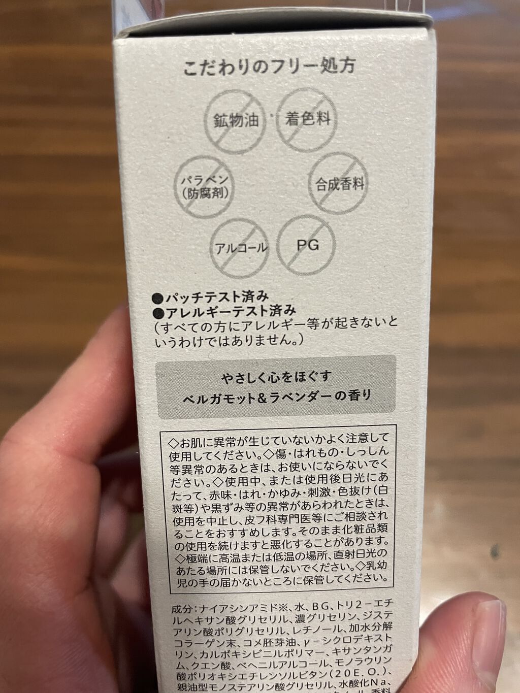 - <50g> 水、ベヘニルアルコール、BG、キサンタンガム、フェノキシエタノール、香料、コメ胚芽油、水酸化Na、濃グリセリン、クエン酸、レチノール、加水分解コラーゲン末、カルボキシビニルポリマー、トリ2-エチルヘキサン酸グリセリル、ナイアシンアミド、水素添加大豆リン脂質、親油型モノステアリン酸グリセリル、ジステアリン酸ポリグリセリル、γ-シクロデキストリン、モノラウリン酸ポリオキシエチレンソルビタン(20E.O.)