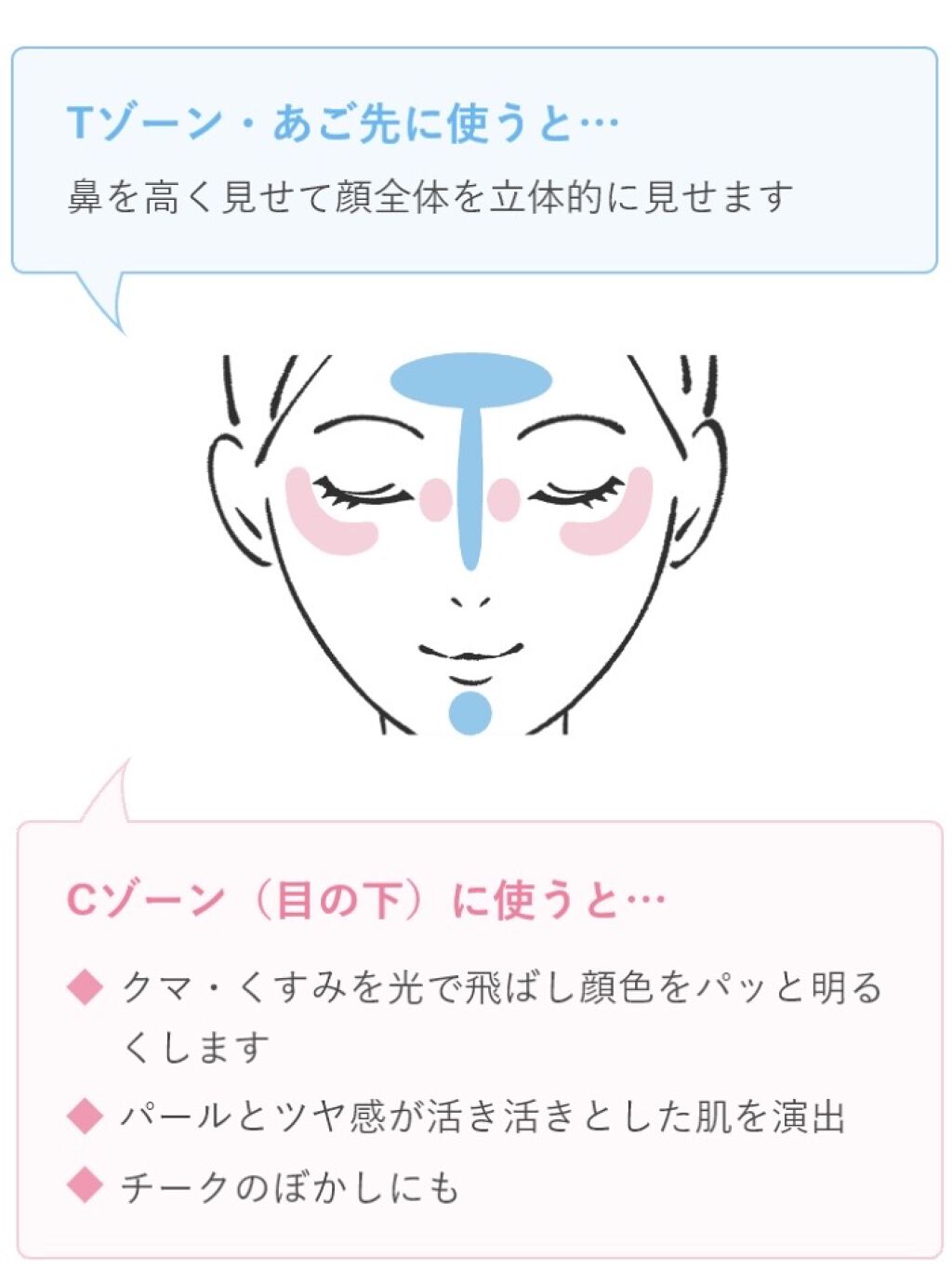 - まるで塗るレフ板。濡れツヤ感ハイライト。 高輝度なパールがぎっしり。まるで肌の内側から発光したようなツヤ感を演出。 くすみやクマを光で飛ばして明るさを出し、お顔を立体的に見せます。 美容保湿成分(ヒアルロン酸Na・ラベンダー花エキス・カミツレ花エキス・ローズマリー葉エキス)配合。