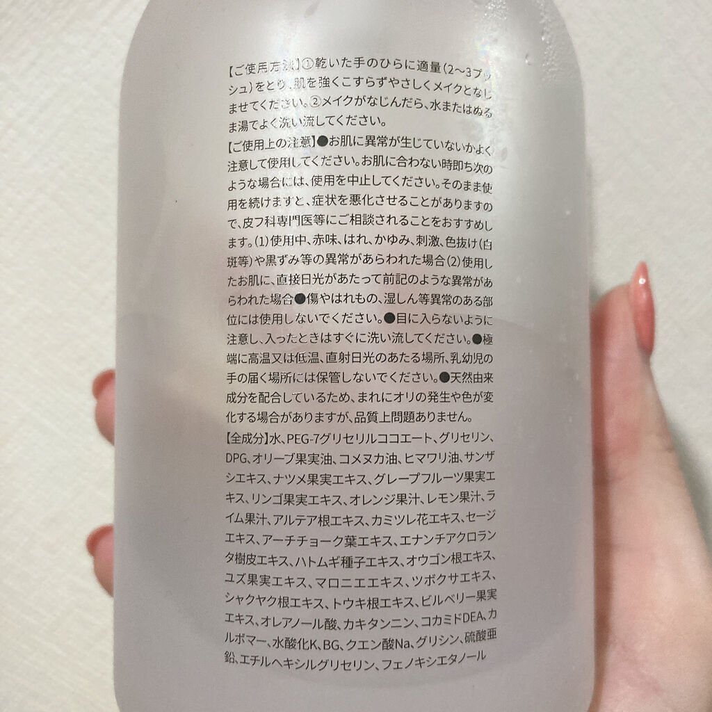 | もったりしたジェルで、伸ばすと厚みがあり、お肌を擦らず、優しくメイクオフできます。柑橘系の香りも癒されますよ♩ | 詳細を見る | ||