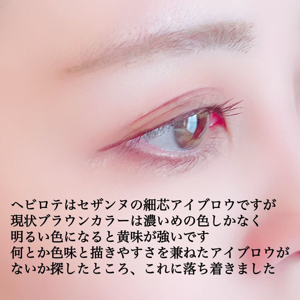 超細芯アイブロウは0.9mmの超細芯で、1本1本毛を描き足すように使えます。ボリュームがほしい部分に自然に描き足せるし、すっと通った眉尻に仕上げやすいです。 ナチュラルなブラウンカラーのBR300を使いましたが、淡い発色で毛を書き足すというよりも眉に色をのせてトーンを整えるイメージで使えるように感じました。 スクリューブラシ付きなのが便利!毛流れを整えやすく、ぼかすように使うことで主張しすぎない優しい眉に仕上がるように思いました✨