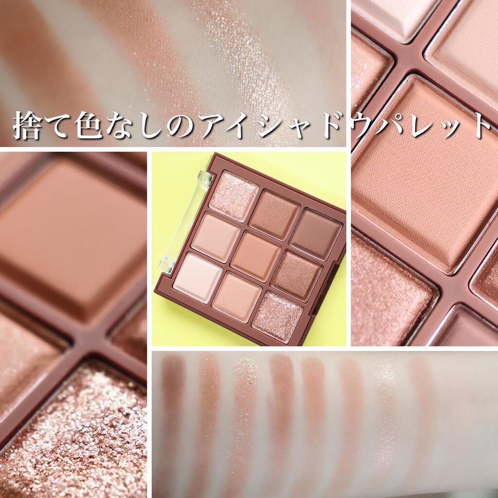 奥ゆかしいチョコレートブラウンムードを詰め込んだアイシャドウパレット🧸 色味はもちろん、アイシャドウが立体的になっていて、本物のチョコレートみたいな、見た目からして可愛い❣️ マットからラメ、グリッターまでバリエーション豊富な9色で、思いのままにアイメイクができる万能パレット🐰