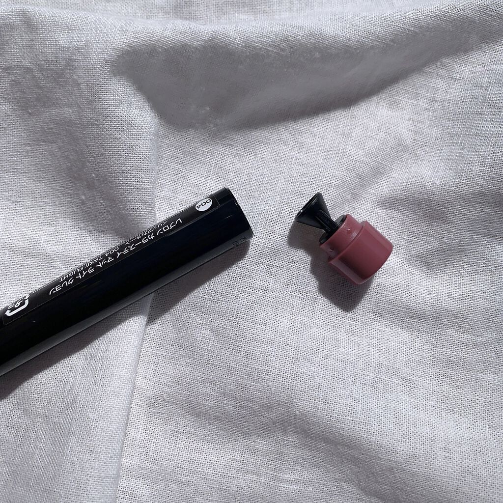 まさにインク。透け感はなく、ほんとに発色がいいです。 つやつやです。ですがヴィニルというだけあって、韓国ティントのようなジューシーなツヤではなくエナメルのような光沢感といった方が近いかもしれません。 普通に問題ないのですが、リキッドにしてはちょっと塗りづらい方かもしれないです。 全然気にならないです。つけてすぐはあんまり思わなかったのですが、無印のリップエッセンスを塗ったようなモチモチ感が続いてます。 とてもいいです。飲食込みで数時間経過しても全然残ってるので上からの油分にも強いかも。 こちらもとても良く、マスクにほとんどつきません。何回も水を飲んだんですが、コップにもついてませんでした。