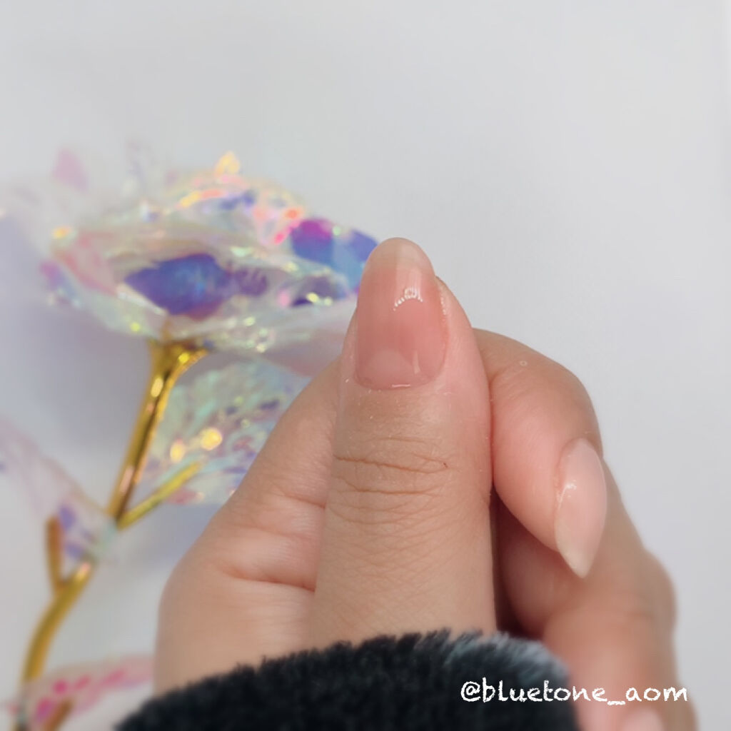 ラメがしっかりしてるし クリアカラーが入ってるから オーロラパウダー無しでも 充分キラキラしました! 反射強めのフィルムなので 実物はもっと うるうるとキラキラが強いです! ビー玉みたい🥺 ネイルシール長持ちさせたいけど ちょっと飽きてきたな〜って時とかに 全然違った印象になるのでオススメです! Seriaのベースジェル 本当にうるうるネイルしやすいので オススメしたい🙆♀️