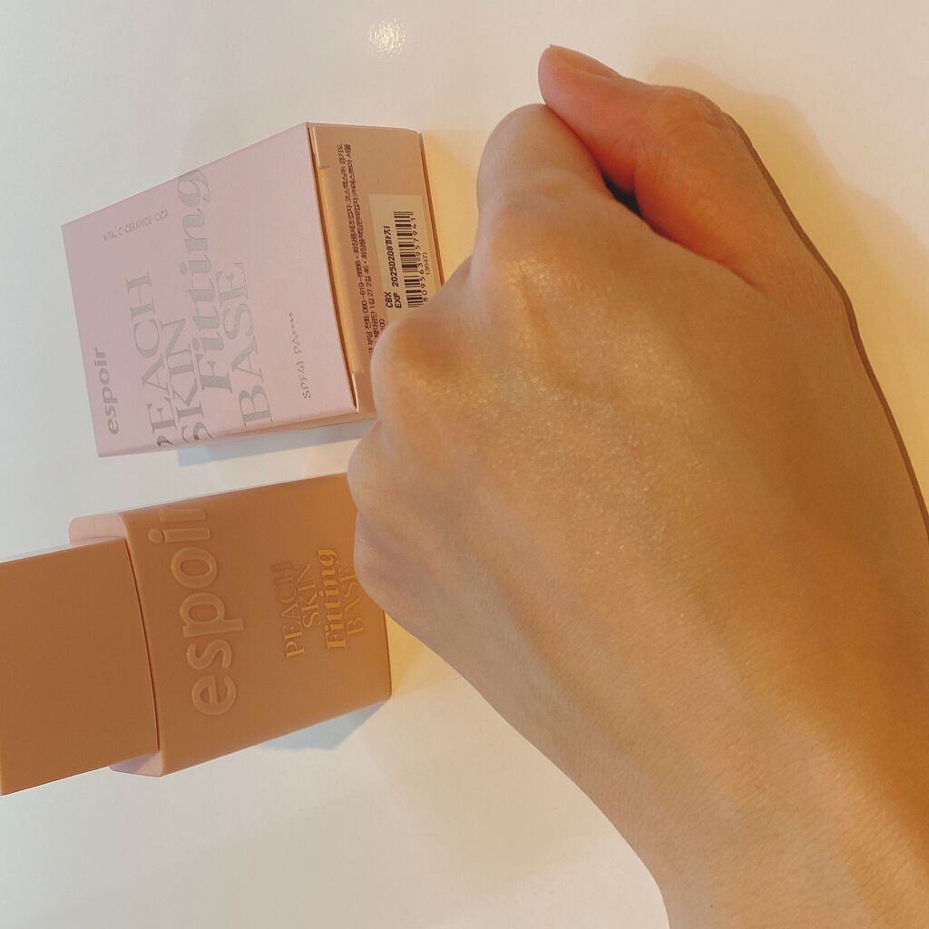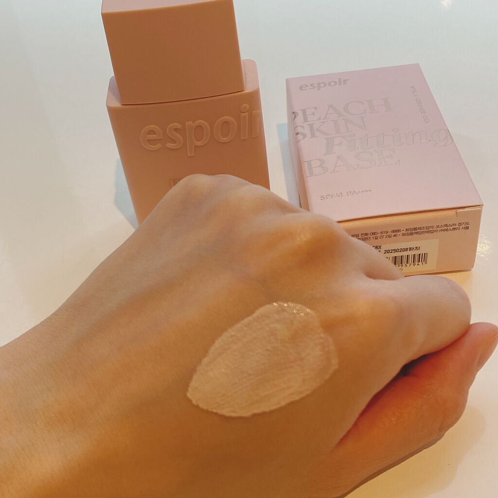espoirピーチスキンフィッティングベースファンデーションとの相性もよく、キープ力もアップ!テカリも抑えられたような気がします🥹軽い着け心地でヨレずに肌のキメを整え毛穴までカバー出来ちゃう優れもの♡更に自然にワントーンアップまで♡鎮静成分の...