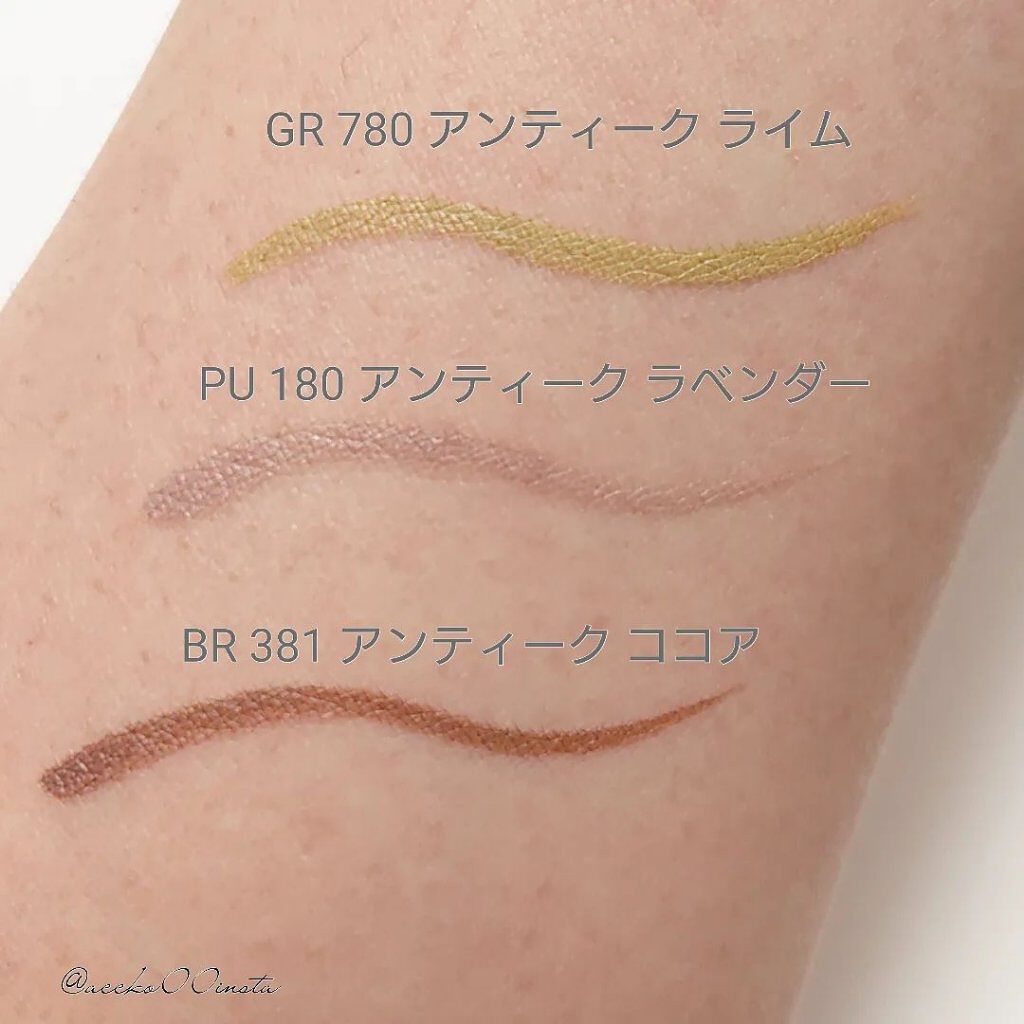 - <BE380 アンティークキャメル> 水・アクリレーツコポリマー・BG・エタノール・ポリアスパラギン酸Na・水溶性コラーゲン・EDTA-2Na・PVP・(チタン/酸化チタン)焼結物・クエン酸・クエン酸Na・ベヘネス-30・メタリン酸Na・水酸化Al・デヒドロ酢酸Na・フェノキシエタノール・メチルパラベン・酸化チタン・酸化鉄 <BR381 アンティークココア> 水・(スチレン/アクリレーツ)コポリマーアンモニウム・BG・エタノール・(チタン/酸化チタン)焼結物・ポリアスパラギン酸Na・水溶性コラーゲン・EDTA-2Na・PVP・クエン酸・クエン酸Na・スルホコハク酸ジエチルヘキシルNa・ベヘネス-30・メタリン酸Na・水酸化Al・デヒドロ酢酸Na・フェノキシエタノール・メチルパラベン・酸化チタン・酸化鉄 <GR780 アンティークライム> 水・(スチレン/アクリレーツ)コポリマーアンモニウム・BG・エタノール・ポリアスパラギン酸Na・水溶性コラーゲン・EDTA-2Na・PVP・(チタン/酸化チタン)焼結物・クエン酸・クエン酸Na・スルホコハク酸ジエチルヘキシルNa・ベヘネス-30・メタリン酸Na・水酸化Al・デヒドロ酢酸Na・フェノキシエタノール・メチルパラベン・酸化チタン・酸化鉄 <OR280 アンティークオレンジ> 水・アクリレーツコポリマー・BG・エタノール・ポリアスパラギン酸Na・水溶性コラーゲン・EDTA-2Na・PVP・(チタン/酸化チタン)焼結物・クエン酸・クエン酸Na・ベヘネス-30・メタリン酸Na・水酸化Al・デヒドロ酢酸Na・フェノキシエタノール・メチルパラベン・酸化チタン・酸化鉄 <PK880 アンティークピーチ> 水・(スチレン/アクリレーツ)コポリマーアンモニウム・BG・エタノール・ベヘネス-30・ポリアスパラギン酸Na・水溶性コラーゲン・EDTA-2Na・(チタン/酸化チタン)焼結物・キサンタンガム・クエン酸・クエン酸Na・スルホコハク酸ジエチルヘキシルNa・水酸化Al・デヒドロ酢酸Na・フェノキシエタノール・メチルパラベン・酸化チタン・酸化鉄・硫酸Ba・赤226 <PU180 アンティークラベンダー> 水・(スチレン/アクリレーツ)コポリマーアンモニウム・BG・エタノール・ベヘネス-30・ポリアスパラギン酸Na・水溶性コラーゲン・EDTA-2Na・(チタン/酸化チタン)焼結物・キサンタンガム・クエン酸・クエン酸Na・スルホコハク酸ジエチルヘキシルNa・水酸化Al・デヒドロ酢酸Na・フェノキシエタノール・メチルパラベン・酸化チタン・酸化鉄・硫酸Ba・赤226