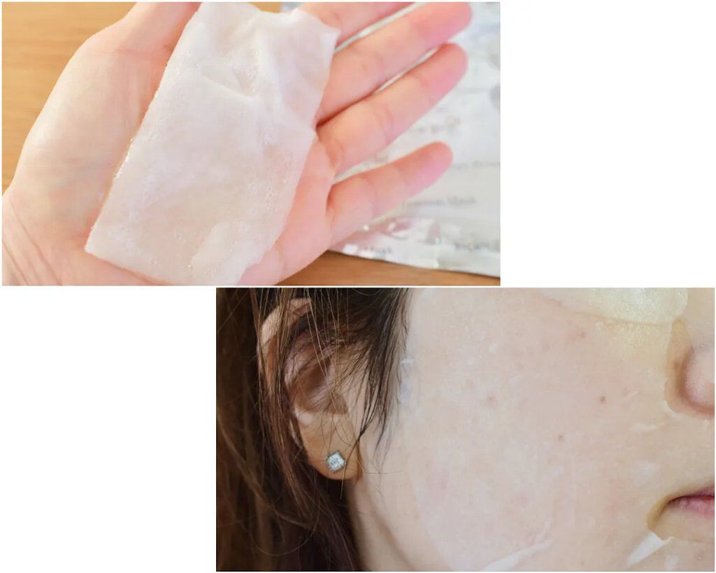 新鮮な状態で使えるというフェイスマスクです。液はマスクに沁み込ませた後も袋の中で余ってしまうほどたっぷり! とてもしなやかなマスクなので肌にピッタリと密着し、美容液がたれてくることもありません。 無農薬栽培米が原料の「乳酸菌コメ麹発酵エキス」やビタミンA・E・Kなど34種の美容成分を贅沢に配合されているこのマスク、
