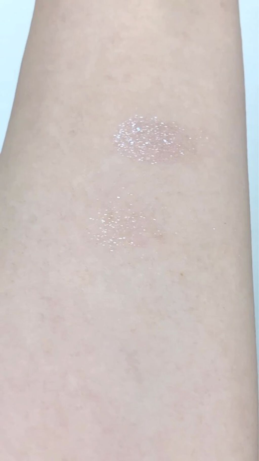 コラボ限定パケと色で、ラメが大小あってとてもキラキラするのでめちゃくちゃ可愛いです⸜❤︎⸝ 乾いた後も密着感もあるので、涙袋や目の周りに塗ってもパラパラ落ちてきたりせず全然大丈夫でした!! 細筆だし取り出す時にラメの量を調節すれば色んなメイクに合わせて使用できると思います✨