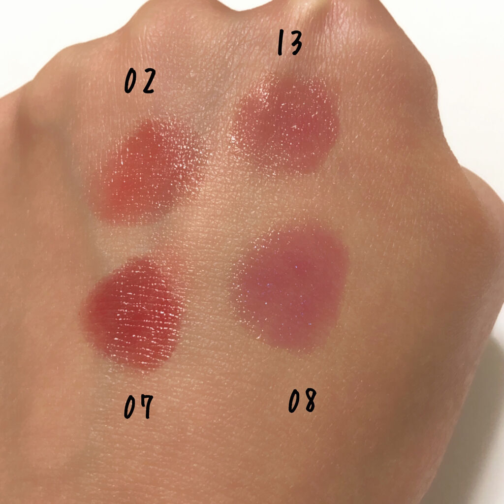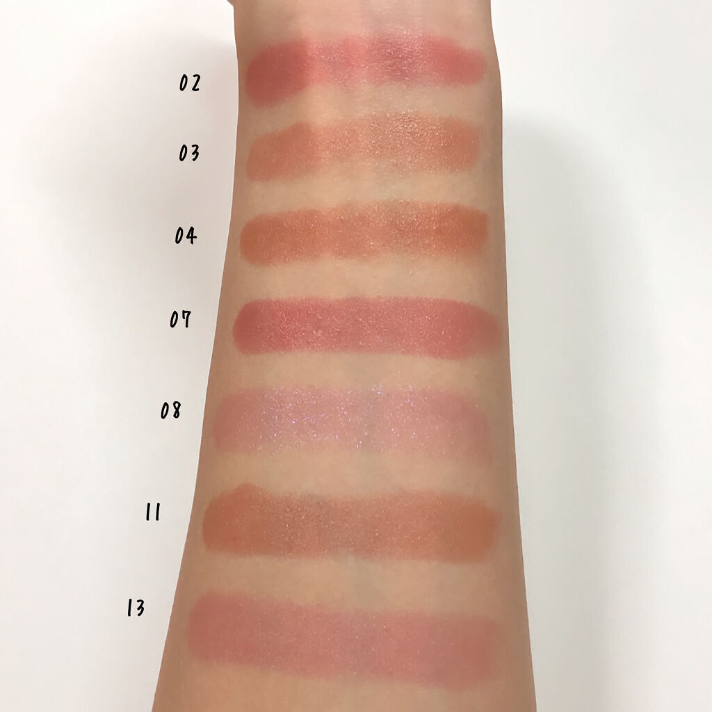 - <01 欲望の塊> テトライソステアリン酸ジペンタエリスリチル、トリ(カプリル酸/カプリン酸)グリセリル、オクチルドデカノール、ラウロイルグルタミン酸ジ(フィトステリル/オクチルドデシル)、ビスアルキル(C16-18)グリセリルウンデシルジメチコン、イソノナン酸イソトリデシル、水添ポリイソブテン、ラウロイルグルタミン酸ジ(オクチルドデシル/フィトステリル/ベヘニル)、パラフィン、合成ワックス、ダイマージリノール酸(フィトステリル/イソステアリル/セチル/ステアリル/ベヘニル)、マイクロクリスタリンワックス、水添マイクロクリスタリンワックス、ヒドロキシステアリン酸エチルヘキシル、トコフェロール、ホホバ種子油、オリーブ果実油、アーモンド油、(エチレン/プロピレン)コポリマー、ポリエチレン、ジメチコン、(+/-)(チタン/酸化チタン)焼結物、マイカ、ラウロイルアスパラギン酸Na、ラウロイルリシン、塩化亜鉛、酸化チタン、酸化鉄、水酸化Al、硫酸Ba、トリイソステアリン酸イソプロピルチタン、酸化スズ、ホウケイ酸(Ca/Al)、合成フルオロフロゴパイト、黄4、黄5、赤104(1)、赤201、赤202 <02 ピンクバナナ> テトライソステアリン酸ジペンタエリスリチル、トリ(カプリル酸/カプリン酸)グリセリル、オクチルドデカノール、ラウロイルグルタミン酸ジ(フィトステリル/オクチルドデシル)、ビスアルキル(C16-18)グリセリルウンデシルジメチコン、イソノナン酸イソトリデシル、水添ポリイソブテン、ラウロイルグルタミン酸ジ(オクチルドデシル/フィトステリル/ベヘニル)、パラフィン、合成ワックス、ダイマージリノール酸(フィトステリル/イソステアリル/セチル/ステアリル/ベヘニル)、マイクロクリスタリンワックス、水添マイクロクリスタリンワックス、ヒドロキシステアリン酸エチルヘキシル、トコフェロール、ホホバ種子油、オリーブ果実油、アーモンド油、(エチレン/プロピレン)コポリマー、ポリエチレン、ジメチコン、(+/-)(チタン/酸化チタン)焼結物、マイカ、ラウロイルアスパラギン酸Na、ラウロイルリシン、塩化亜鉛、酸化チタン、酸化鉄、水酸化Al、硫酸Ba、トリイソステアリン酸イソプロピルチタン、酸化スズ、ホウケイ酸(Ca/Al)、合成フルオロフロゴパイト、黄4、黄5、赤104(1)、赤201、赤202 <03 陽炎> テトライソステアリン酸ジペンタエリスリチル、トリ(カプリル酸/カプリン酸)グリセリル、オクチルドデカノール、ラウロイルグルタミン酸ジ(フィトステリル/オクチルドデシル)、ビスアルキル(C16-18)グリセリルウンデシルジメチコン、イソノナン酸イソトリデシル、水添ポリイソブテン、ラウロイルグルタミン酸ジ(オクチルドデシル/フィトステリル/ベヘニル)、パラフィン、合成ワックス、ダイマージリノール酸(フィトステリル/イソステアリル/セチル/ステアリル/ベヘニル)、マイクロクリスタリンワックス、水添マイクロクリスタリンワックス、ヒドロキシステアリン酸エチルヘキシル、トコフェロール、ホホバ種子油、オリーブ果実油、アーモンド油、(エチレン/プロピレン)コポリマー、ポリエチレン、ジメチコン、(+/-)(チタン/酸化チタン)焼結物、マイカ、ラウロイルアスパラギン酸Na、ラウロイルリシン、塩化亜鉛、酸化チタン、酸化鉄、水酸化Al、硫酸Ba、トリイソステアリン酸イソプロピルチタン、酸化スズ、ホウケイ酸(Ca/Al)、合成フルオロフロゴパイト、黄4、黄5、赤104(1)、赤201、赤202 <04 パンプキンワイン> テトライソステアリン酸ジペンタエリスリチル、トリ(カプリル酸/カプリン酸)グリセリル、オクチルドデカノール、ラウロイルグルタミン酸ジ(フィトステリル/オクチルドデシル)、ビスアルキル(C16-18)グリセリルウンデシルジメチコン、イソノナン酸イソトリデシル、水添ポリイソブテン、ラウロイルグルタミン酸ジ(オクチルドデシル/フィトステリル/ベヘニル)、パラフィン、合成ワックス、ダイマージリノール酸(フィトステリル/イソステアリル/セチル/ステアリル/ベヘニル)、マイクロクリスタリンワックス、水添マイクロクリスタリンワックス、ヒドロキシステアリン酸エチルヘキシル、トコフェロール、ホホバ種子油、オリーブ果実油、アーモンド油、(エチレン/プロピレン)コポリマー、ポリエチレン、ジメチコン、(+/-)(チタン/酸化チタン)焼結物、マイカ、ラウロイルアスパラギン酸Na、ラウロイルリシン、塩化亜鉛、酸化チタン、酸化鉄、水酸化Al、硫酸Ba、トリイソステアリン酸イソプロピルチタン、酸化スズ、ホウケイ酸(Ca/Al)、合成フルオロフロゴパイト、黄4、黄5、赤104(1)、赤201、赤202 <05 ダークフィグ> テトライソステアリン酸ジペンタエリスリチル、トリ(カプリル酸/カプリン酸)グリセリル、オクチルドデカノール、ラウロイルグルタミン酸ジ(フィトステリル/オクチルドデシル)、ビスアルキル(C16-18)グリセリルウンデシルジメチコン、イソノナン酸イソトリデシル、水添ポリイソブテン、ラウロイルグルタミン酸ジ(オクチルドデシル/フィトステリル/ベヘニル)、