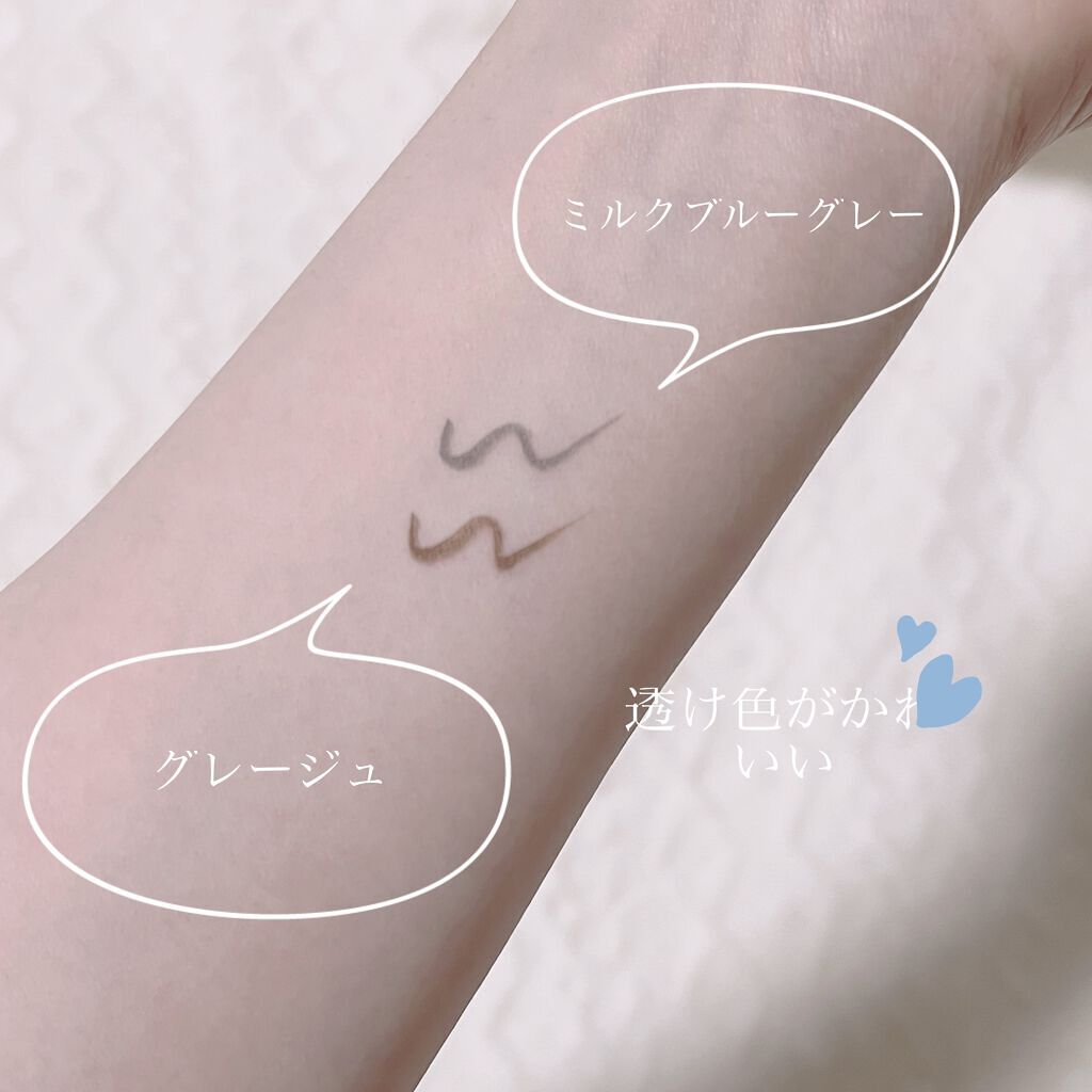 ウォータープルーフ・美容液成分配合 ¥990(税込) しっかり目元を引き締める黒 ブラックで細いラインが描きたい方におすすめ 強調と抜け感を両立するグレージュ ピンク、オレンジ、ブラウン、どの色にも合わせやすそうな色かなと思いました。