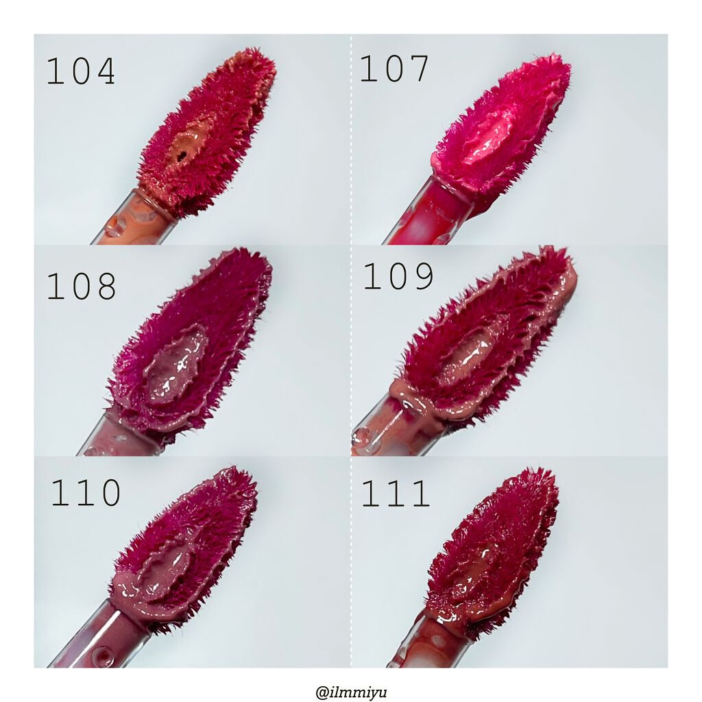 エクマル💞上から109.111.115.118可愛い🥰115は塗ってもあんまり変化ないから失敗したかも🥲ティッシュでごしごししたけど色残りすごい!あとシリコンチップ付きで便利!EQUMALノンセクショングローリーティント109 ビターウィンズ...