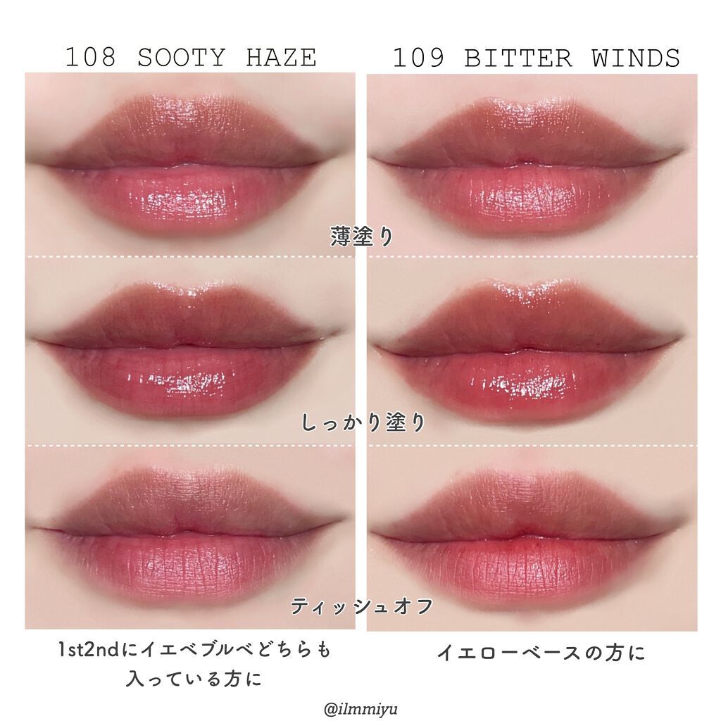 - <101タンギーフラッシュ(TANGY FLASH)> 水、オクチルドデカノール、ジフェニルジメチコン、ジフェニルシロキシフェニルトリメチコ、ジポリヒドロキシステアリン酸ポリグリセリル-2、エタノール、エチルセルロース、ステアロイルグルタミン酸Na、ベヘニルアルコール、ツバキ種子油、カニナバラ果実油、ダマスクバラ花油、ポリアクリレート-13、ペンチレングリコール、ポリソルベート20、セテアリルアルコール、ポリイソブテン、ステビオシド、クエン酸、エチルヘキシルグリセリン、イソステアリン酸ソルビタン、クエン酸Na、トリ(カプリル/カプリン酸)グリセリル、水酸化Al、酸化チタン、BG、トコフェロール、香料、フェノキシエタノール、デヒドロ酢酸、黄色4号、赤色104号の(1)、赤色227号、黄色5号 <103 メロウグロー(MELLOW GLOW)> 水、オクチルドデカノール、ジフェニルジメチコン、ジフェニルシロキシフェニルトリメチコ、ジポリヒドロキシステアリン酸ポリグリセリル-2、エタノール、エチルセルロース、ステアロイルグルタミン酸Na、ベヘニルアルコール、ツバキ種子油、カニナバラ果実油、ダマスクバラ花油、ポリアクリレート-13、ペンチレングリコール、ポリソルベート20、セテアリルアルコール、ポリイソブテン、ステビオシド、クエン酸、エチルヘキシルグリセリン、イソステアリン酸ソルビタン、BG、水酸化Al、酸化チタン、ポリアクリル酸Na、ステアレス-20、クエン酸Na、トリ(カプリル/カプリン酸)グリセリル、トコフェロール、香料、フェノキシエタノール、デヒドロ酢酸、CI 77491、赤色227号、赤色104号の(1)、黄色4号、青色1号 <106 レディポジション(READY POSITION)> 水、オクチルドデカノール、ジフェニルジメチコン、ジフェニルシロキシフェニルトリメチコ、ジポリヒドロキシステアリン酸ポリグリセリル-2、エタノール、エチルセルロース、ステアロイルグルタミン酸Na、ポリアクリレート-13、ベヘニルアルコール、ツバキ種子油、カニナバラ果実油、ダマスクバラ花油、ペンチレングリコール、ポリソルベート20、セテアリルアルコール、ポリイソブテン、ステビオシド、クエン酸、エチルヘキシルグリセリン、イソステアリン酸ソルビタン、クエン酸Na、トリ(カプリル/カプリン酸)グリセリル、トコフェロール、香料、フェノキシエタノール、デヒドロ酢酸、赤色104号の(1)、黄色4号、赤色227号 <107 オフショア(OFFSHORE)> 水、オクチルドデカノール、ジフェニルジメチコン、ジフェニルシロキシフェニルトリメチコ、ジポリヒドロキシステアリン酸ポリグリセリル-2、エタノール、エチルセルロース、ステアロイルグルタミン酸Na、ポリアクリレート-13、ベヘニルアルコール、ツバキ種子油、カニナバラ果実油、ダマスクバラ花油、ペンチレングリコール、ポリソルベート20、セテアリルアルコール、ポリイソブテン、ステビオシド、クエン酸、エチルヘキシルグリセリン、イソステアリン酸ソルビタン、クエン酸Na、トリ(カプリル/カプリン酸)グリセリル、トコフェロール、香料、フェノキシエタノール、デヒドロ酢酸、赤色104号の(1)、黄色4号、赤色227号 <108 スーティヘイズ(SOOTY HAZE)> 水、オクチルドデカノール、ジフェニルジメチコン、ジフェニルシロキシフェニルトリメチコン、ジポリヒドロキシステアリン酸ポリグリセリル-2、エタノール、エチルセルロース、ステアロイルグルタミン酸Na、ベヘニルアルコール、ツバキ種子油、カニナバラ果実油、ダマスクバラ花油、ポリアクリレート-13、ペンチレングリコール、ポリソルベート20、セテアリルアルコール、ポリイソブテン、ステビオシド、クエン酸、エチルヘキシルグリセリン、イソステアリン酸ソルビタン、クエン酸Na、トリ(カプリル酸/カプリン酸)グリセリル、トコフェロール、香料、フェノキシエタノール、デヒドロ酢酸、赤227、黄4、青1 <109 ビターウィンズ(BITTER WINDS)> 水、オクチルドデカノール、ジフェニルジメチコン、ジフェニルシロキシフェニルトリメチコン、ジポリヒドロキシステアリン酸ポリグリセリル-2、エタノール、エチルセルロース、ステアロイルグルタミン酸Na、ベヘニルアルコール、ツバキ種子油、カニナバラ果実油、ダマスクバラ花油、ポリアクリレート-13、ペンチレングリコール、ポリソルベート20、セテアリルアルコール、ポリイソブテン、ステビオシド、クエン酸、エチルヘキシルグリセリン、イソステアリン酸ソルビタン、クエン酸Na、トリ(カプリル酸/カプリン酸)グリセリル、トコフェロール、香料、フェノキシエタノール、デヒドロ酢酸、赤227、黄4、青2 <110 ディムドリーム(DIM DREAM)> 水、オクチルドデカノール、ジフェニルジメチコン、ジフェニルシロキシフェニルトリメチコン、ジポリヒドロキシステアリン酸ポリグリセリル-2、エタノール、エチルセルロース、ステアロイルグルタミン酸Na、ベヘニルアルコール、ツバキ種子油、カニナバラ果実油、ダマスクバラ花油、ポリアクリレート-13、ペンチレングリコール、ポリ