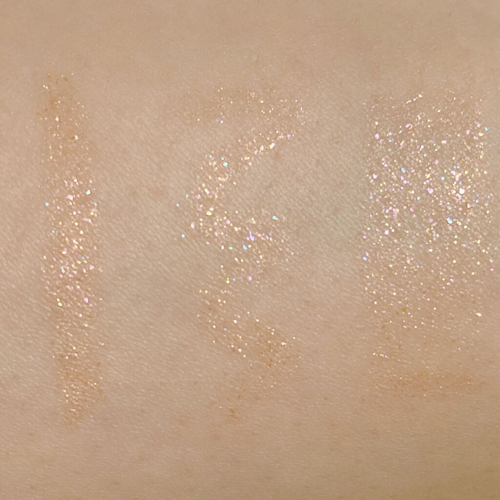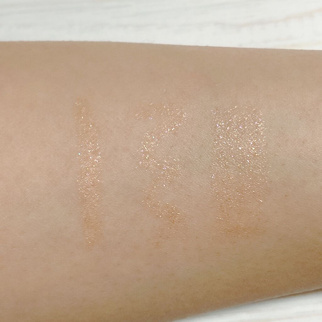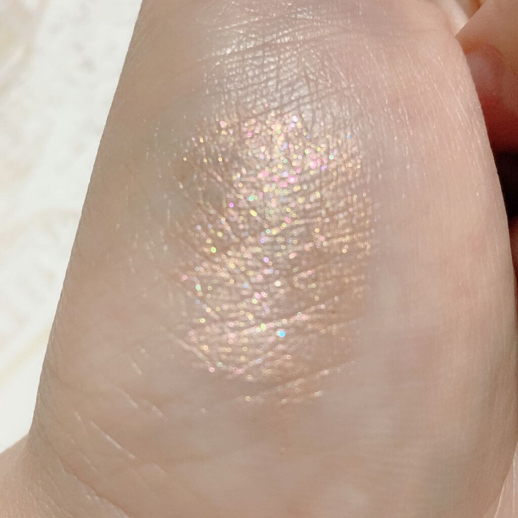 こちらのアイシャドウはラメとマットの2色セット。 向かって右はリッチラスタータイプ。淡いピンクに多色ラメがキラッキラ💎 左はリッチマットタイプ。淡めで明るいピンクベージュです! どちらも粉質はやや固めでサラッと付くイメージです。 最後に着画を載せてみました!上まぶたと下まぶた全体にマットなピンクベージュを塗り、黒目上と涙袋中央にラメを乗せています。 このパレットだけで仕上げてももちろん可愛いのですが、他のパレットと合わせても使いやすそうな配色です。