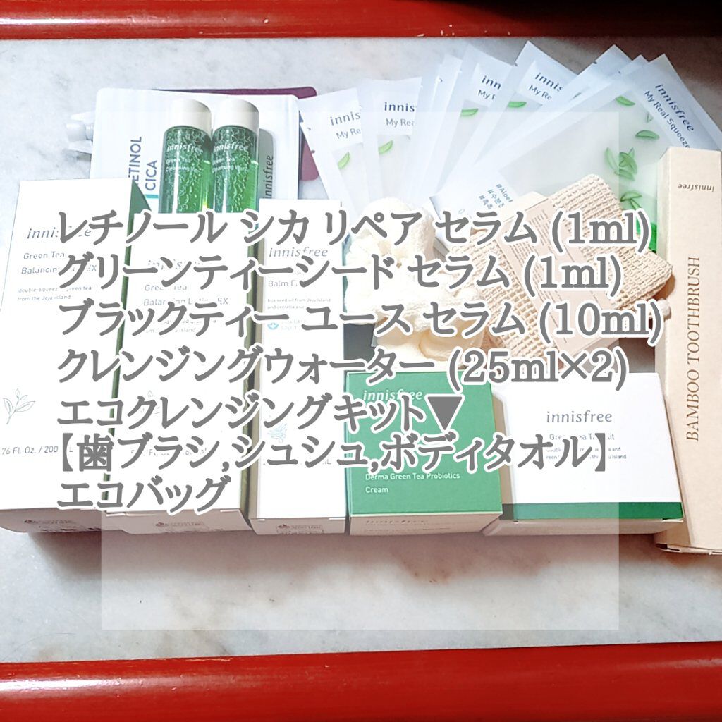 PDRNスキンケアラインセット とっても豪華なラッキーバッグ🙌🏻 おまけもたっっぷり同梱されていてビックリ👀✨ イニスフリーで大好きなグリーンティーシードヒアルロンセラム🌿そのシリーズの化粧水やPDRN、クリームetc...まだ使用したことないものばかりで楽しみ🪽 昔、ヴォルカニックカーミングポアクレイマスク(細長いタイプの柔らかいver)のを愛用していたけど廃盤になっちゃったのかな…🤔?
