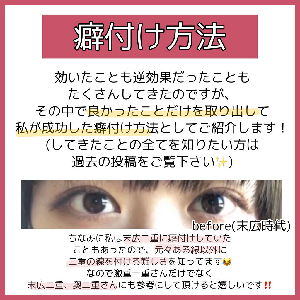【癖付け】二重になるまでの戦い🔥🔥🔥激重一重から二重になるまでの過程は、2枚目と3枚目にあるので良ければご覧下さい🙏今回伝えたいことのほとんど全ては写真に書いてあるので本文では、・自分に合った二重幅の見つけ方・癖付けにおいて個人的にしない方が...