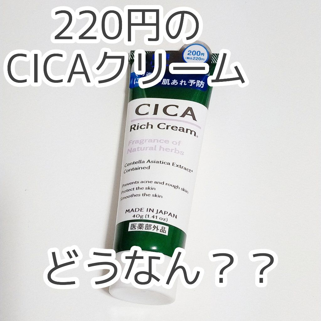 【DAISOCICAリッチクリームD】正直あまり期待してませんでしたが、医薬部外品と書いてあったので購入してみました。使ってみたらびっくり!赤みが引いてくれました😯!!!クリームは緑っぽく、香りもCICA特有な香りがありますが200円で医薬部...