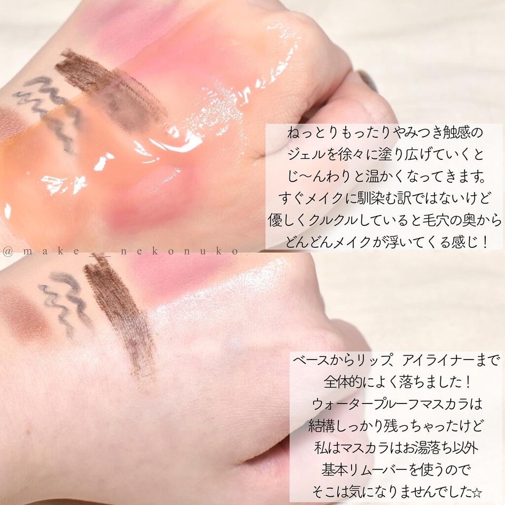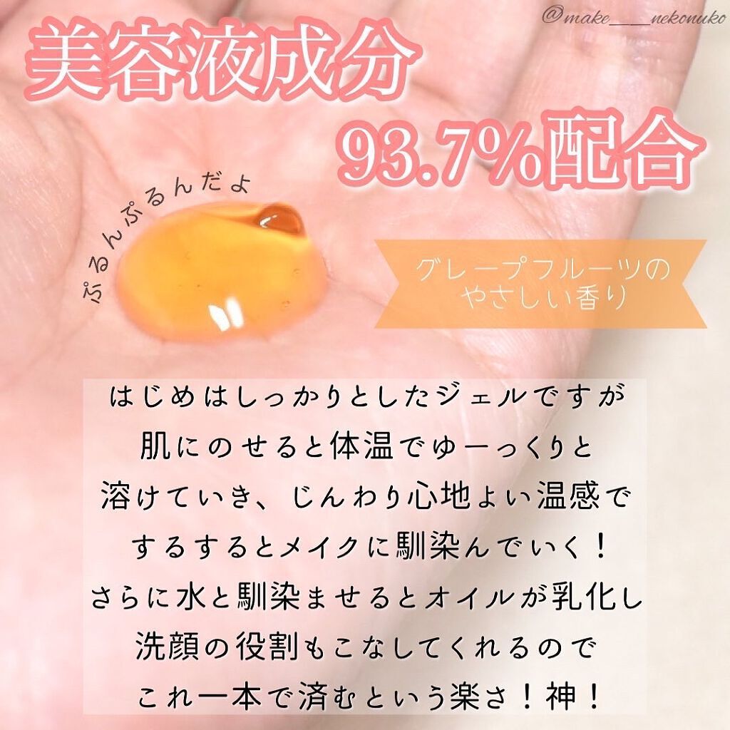 | もったりしたジェルで、伸ばすと厚みがあり、お肌を擦らず、優しくメイクオフできます。柑橘系の香りも癒されますよ♩ | 詳細を見る | ||