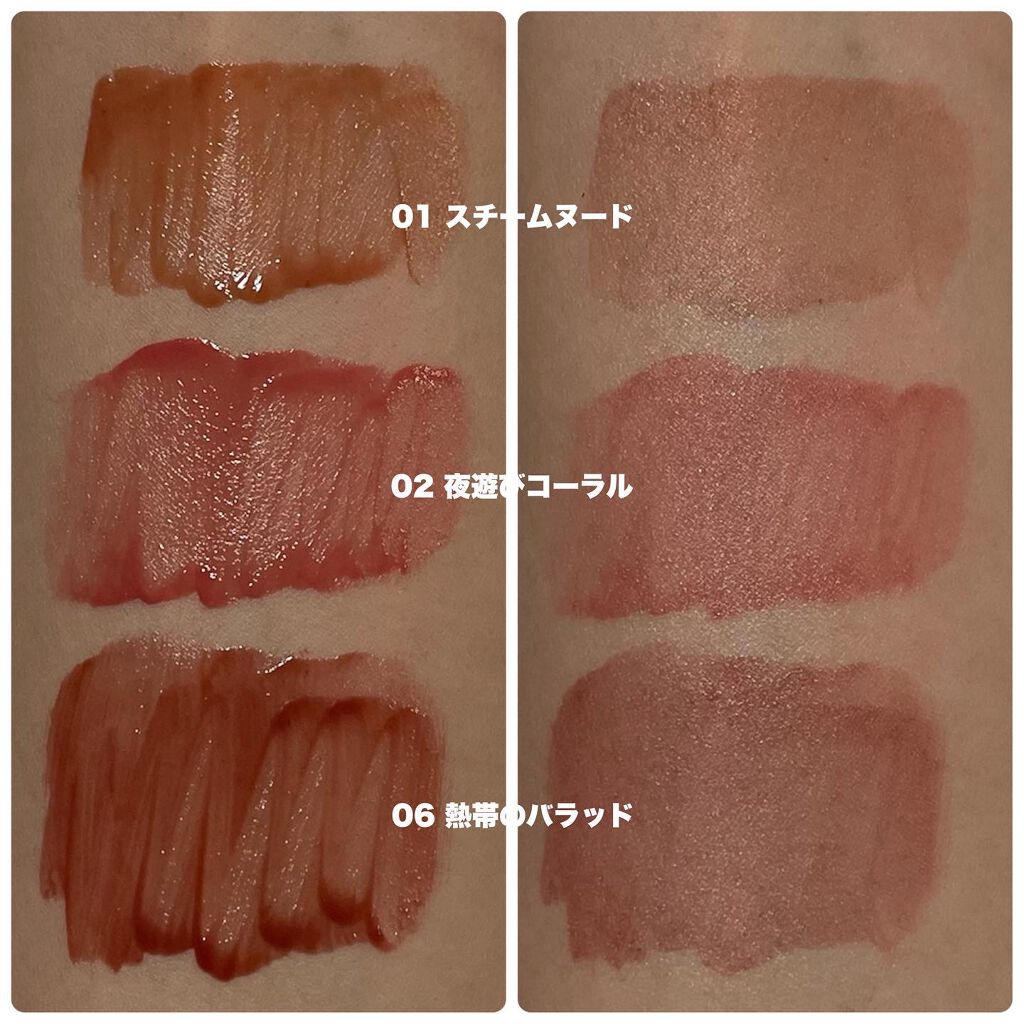 | 指で軽く触るとジェル膜を感じられますし、ツヤツヤぷるぷるのリップに仕上がります! | 詳細を見る | ||