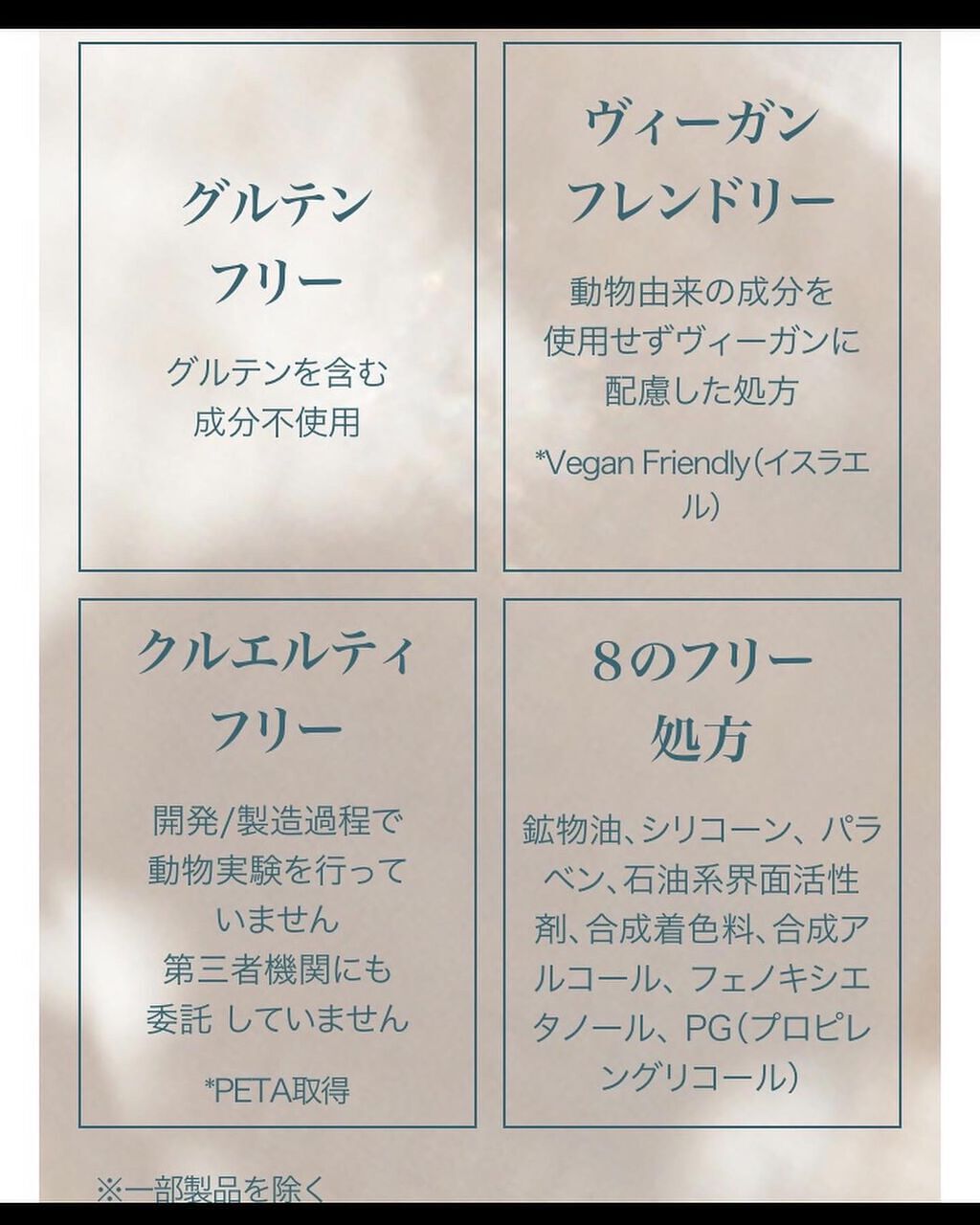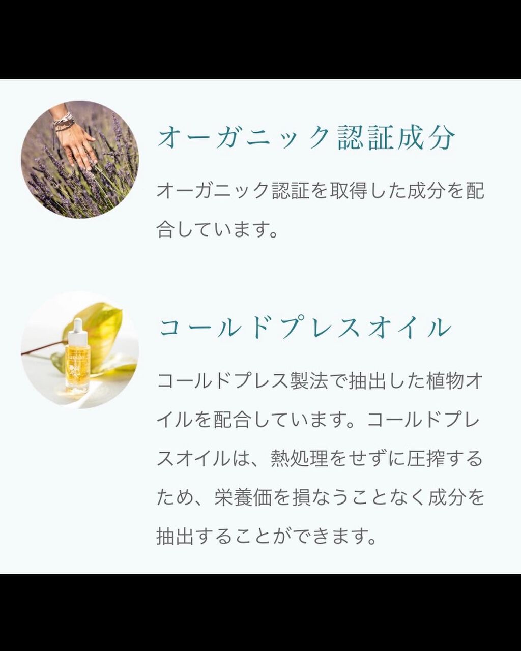- 水、アロエベラ液汁 *、ステアリン酸グリセリル(SE)、 トリ(カプリル酸/カプリン酸)グリセリル、ミリスチン酸イソプ ロピル、プロパンジオール、セタノール、ダマスクバラ花水 *、 ザクロ種子油 *、ヒアルロン酸Na、カニナバラ果実油 *、グ リセリン、アーモンド油 *、フェネチルアルコール、ビターオレ ンジ花水 *、ダマスクバラ花油、アボカド油 *、ラベンダー花 水 *、ニオイテンジクアオイ花水 *、ローマカミツレ花油 *、シ ア脂 *、メリッサ葉油 *、PCA-Na、カプリリルグリコール、 酢酸トコフェロール、ステアロイルグルタミン酸Na、クエン 酸、ソルビン酸K