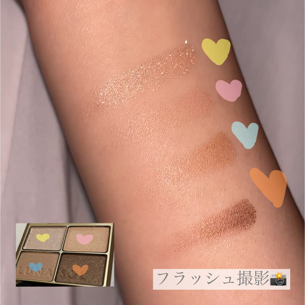- ベージュを基調としながらも、発色、光感、透明度を計算した組み合わせをセットした4色アイシャドウ。光によって発色するルーセントカラーピグメントが、肌を美しく見せます。陰影を際立たせ、立体感ある印象的な目元を演出します。