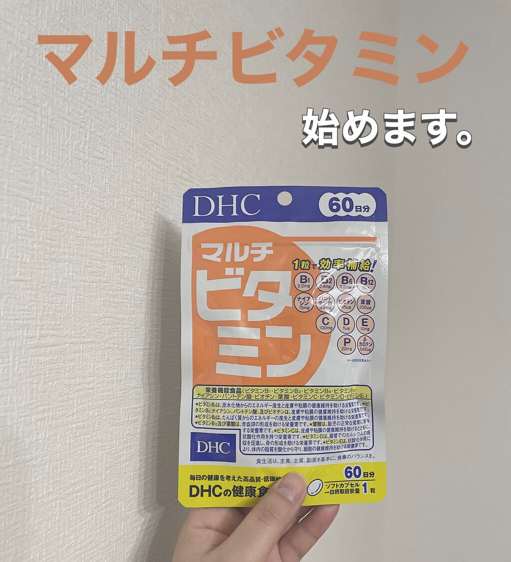 - 健康と美容を保つうえで欠かせないビタミン。 「マルチビタミン」は、11種類のビタミンとビタミンP、β-カロテンを1粒にバランスよく配合したサプリメントです。 手軽に補うことができます。 ※水またはぬるま湯でお召し上がりください。 ※本品は、多量摂取により疾病が治癒したり、より健康が増進するものではありません。一日の摂取目安量を守ってください。 ※葉酸は、胎児の正常な発育に寄与する栄養素ですが、多量摂取により胎児の発育がよくなるものではありません。 ※本品は、特定保健用食品と異なり、消費者庁長官による個別審査を受けたものではありません。 【飲み方】 1日の目安1粒で、現代人に不足しがちなビタミン13種類をまとめて効率よく摂取できます。 【栄養機能表示】 ・ナイアシン、パントテン酸、ビオチン、ビタミンB2、β-カロテンは、皮膚や粘膜の健康維持を助ける栄養素です。 ・ビタミンB1は、炭水化物からのエネルギー産生と皮膚や粘膜の健康維持を助ける栄養素です。 ・ビタミンB6は、たんぱく質からのエネルギー産生と皮膚や粘膜の健康維持を助ける栄養素です。 ・ビタミンB12、葉酸は、赤血球の形成を助ける栄養素です。 ・ビタミンCは、皮膚や粘膜の健康維持を助けるとともに、抗酸化作用をもつ栄養素です。 ・ビタミンEは、抗酸化作用により、体内の脂質を酸化から守り、細胞の健康維持を助ける栄養素です。 ・葉酸は、胎児の正常な発育に寄与する栄養素です。 ※葉酸は、胎児の正常な発育に寄与する栄養素ですが、多量摂取により胎児の発育が良くなるものではありません。 ・β-カロテンは、夜間の視力の維持を助ける栄養素です。 ・ビタミンDは、腸管でのカルシウムの吸収を促進し、骨の形成を助ける栄養素です。 【名称】 ビタミン類含有食品 【原材料名】 オリーブ油(スペイン製造)/ゼラチン、ビタミンC、グリセリン、酵素処理ルチン、ナイアシン、へスぺリジン、ビタミンE、パントテン酸Ca、ミツロウ、デュナリエラカロテン、ビタミンB6、ビタミンB2、ビタミンB1、レシチン(大豆由来)、葉酸、ビオチン、ビタミンB12、ビタミンD3 【栄養成分表示[1粒545mgあたり]】 熱量2.9kcal、たんぱく質0.16g、脂質0.18g、炭水化物0.16g、食塩相当量0.03g、ビタミンB1 2.2mg(183)、ビタミンB2 2.4mg(171)、ビタミンB6 3.2mg(246)、ビタミンB12 6.0μg(250)、ナイアシン15mg(115)、パントテン酸9.2mg(192)、ビオチン45μg(90)、葉酸200μg(83)、ビタミンC 100mg(100)、ビタミンD 5.0μg(91)、ビタミンE 10.0mg(159)、ビタミンP 20mg、β-カロテン5400μg ※上記( )内の値は、栄養素等表示基準値(18歳以上、基準熱量2200kcal)に占める割合[%]です。 アレルギー物質 大豆 ゼラチン ※一日の目安量を守って、お召し上がりください。 ※お身体に異常を感じた場合は、摂取を中止してください。 ※特定原材料及びそれに準ずるアレルギー物質を対象範囲として表示しています。原材料をご確認の上、食物アレルギーのある方はお召し上がりにならないでください。 ※薬を服用中あるいは通院中の方、妊娠中の方は、お医者様にご相談の上お召し上がりください。 ●直射日光、高温多湿な場所をさけて保存してください。 ●お子様の手の届かないところで保管してください。 ●開封後はしっかり開封口を閉め、なるべく早くお召し上がりください。 食生活は、主食、主菜、副菜を基本に、食事のバランスを。