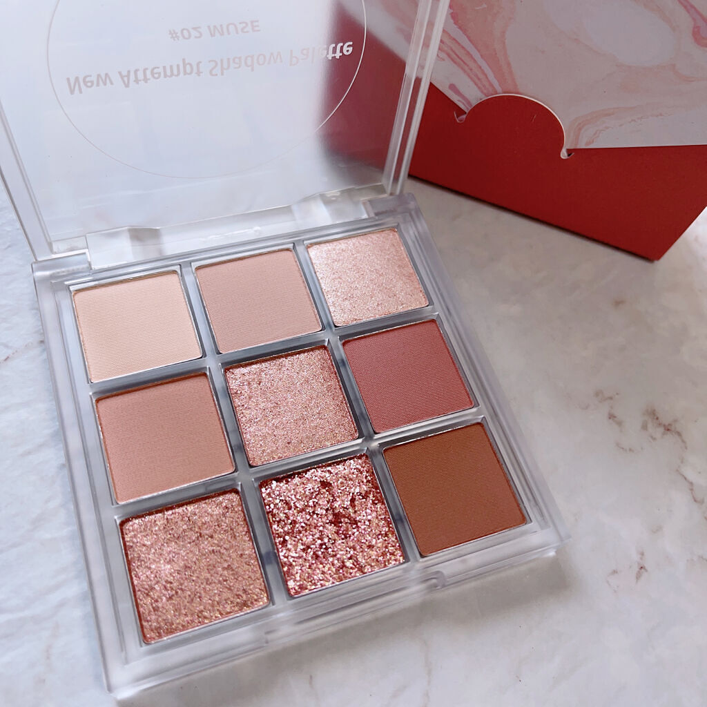 マットは今回購入して無いので粉質は分かりませんが、シマー、パール系はしっとり艶々、グリッターはベース色薄めの細かいラメでラメ飛びも気にならず🙆♀️ ブラシよりもチップもしくは指塗りでボカしにブラシを使うのがオススメです💡 Qoo10やAmazonでも販売されてるけど、公式サイトが1番送料が安かったです💫