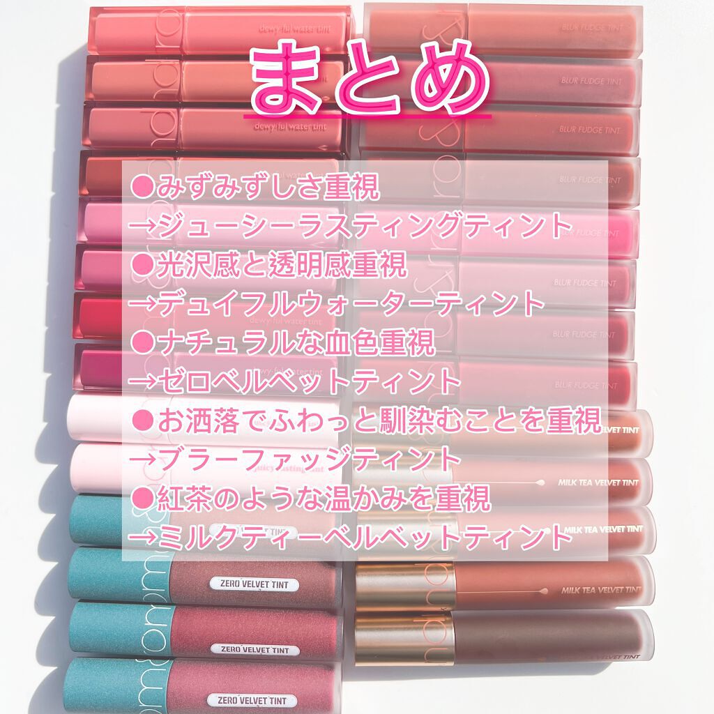 𓊆ྀི手持ちロムアンドティント6色紹介𓊇ྀིジューシーラスティングティント▶︎18MULLEDPEACH▶︎19ALMANDROSE▶︎25BAREGRAPE▶︎31BAREAPRICOTゼロベルベットティント▶︎16BURNYNUDEブラー...