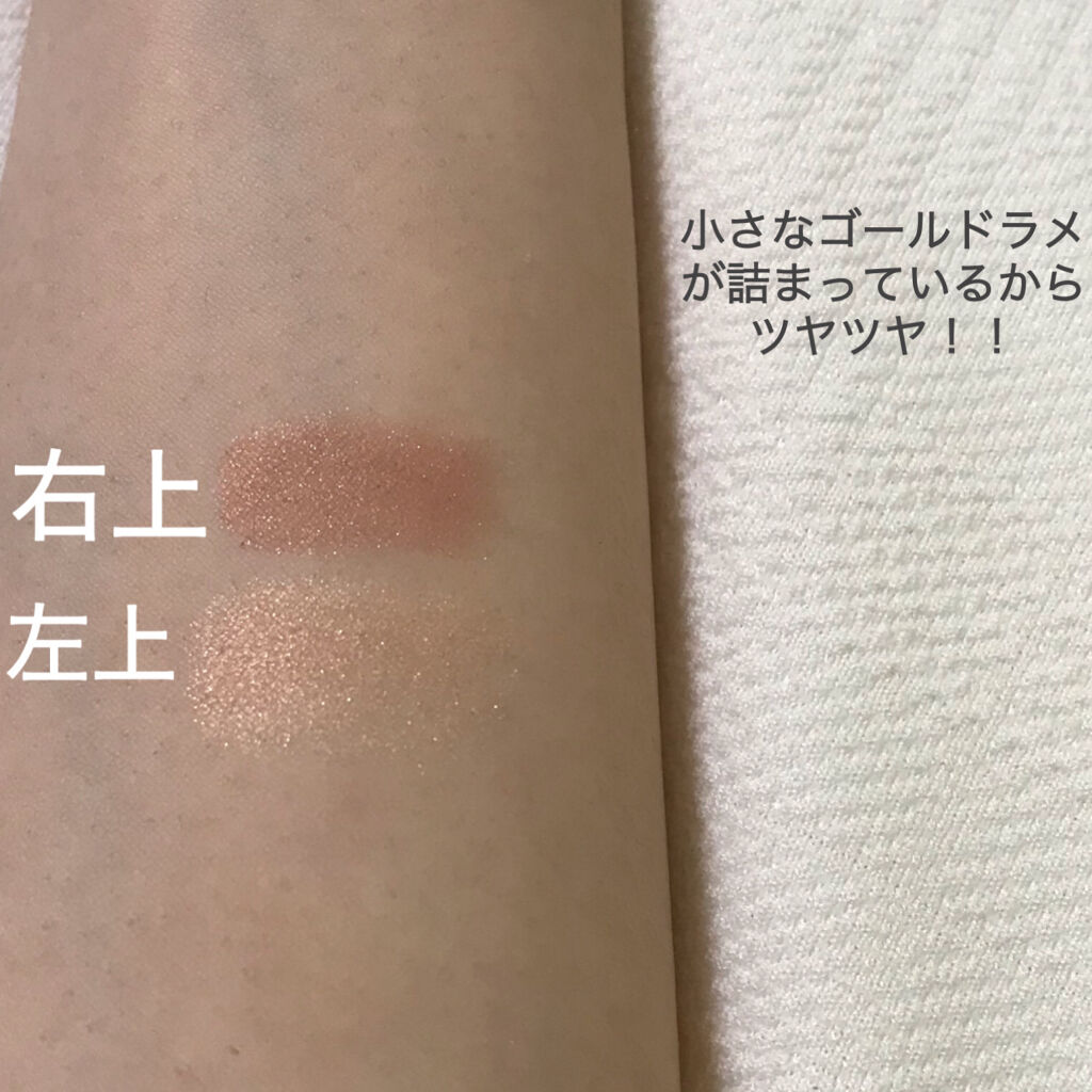 粉細かいサラサラなのにしっとり感のある粉質マット、シマー、ラメ、グリッターの配分神ブラシへの粉含み良し 配色は勿論のことラメにもこだわりを感じる一色だけでなく数色のラメが密度高く詰まっているためいろんな角度からラメを楽しめる! 韓国といえば…ラメ!なのにシマーが素敵!涙袋、目頭、黒目上にのせるとチラチラしてかわいいマットを引き立たせることもできるしグリッターを引き立たせることもできる万能なアイシャドウ