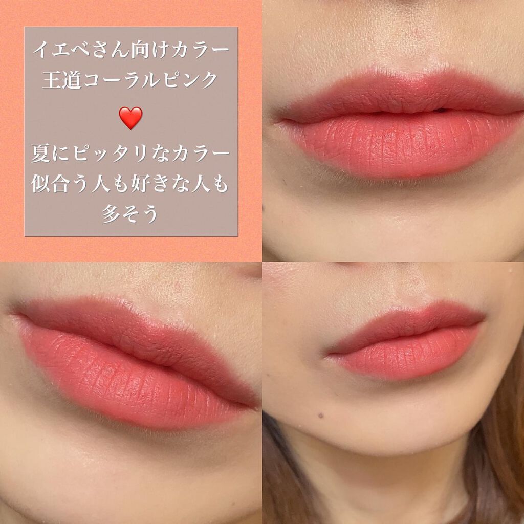 新色がすごく可愛いカラー😍 黄みのピンクベージュだった😂 赤みを抑えた深みブラウン。 色もちがすごい!と評価が高いけど 私は乾燥を感じましたが私はかなりの乾燥肌で唇も結構乾燥するからかも カラバリ豊富でオシャレカラー多い 色変わりがしないのはピカイチ 私の唇には合わなかった🥲 ブルベさん向きのカラーは少なめ
