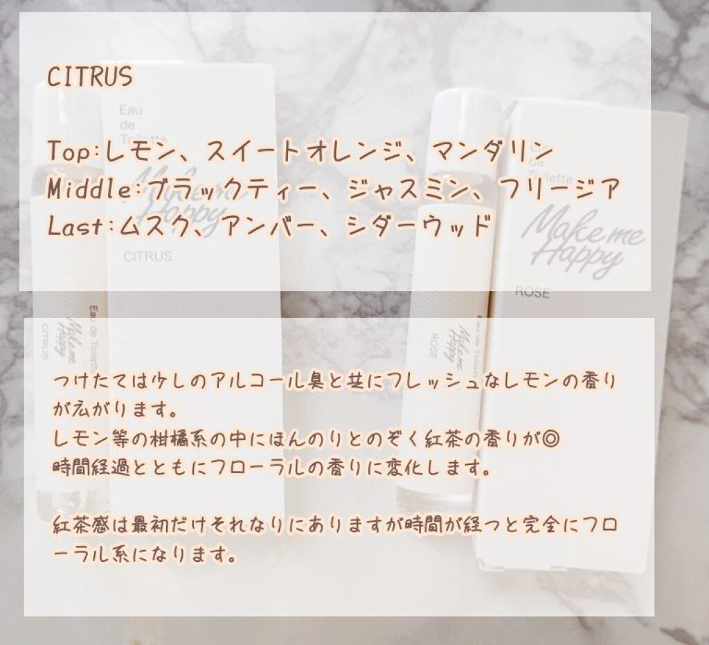 つける量を調整しやすい、ロールオンタイプのオードトワレです。 持ち運びにも便利なサイズ! 正直、「これはちょっと…」っと思うような、きつすぎる香りはなく(個人の意見です笑)、ふわっと香る良い香りがたくさんありました。 メイクミーハッピー オードトワレ WHITE ~白い花束をイメージした柔らかい香り~ 💬柔らかいフローラルの香りで、上品です