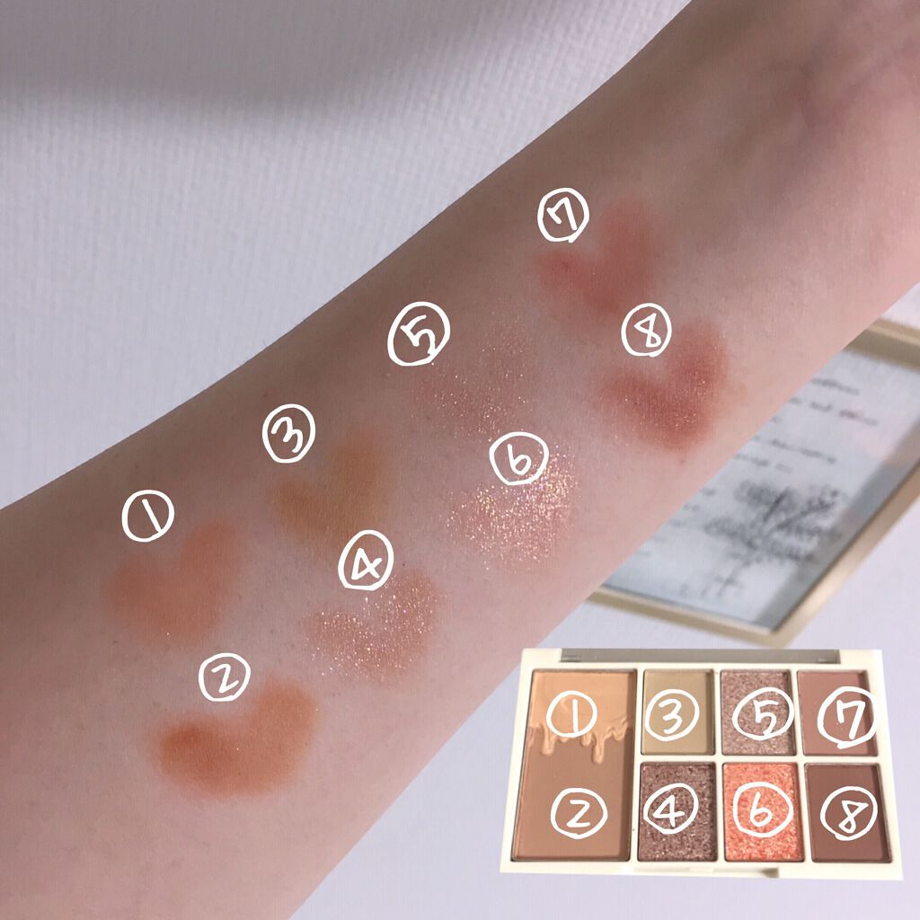 美容液成分が入ってるって凄い!! しっとりした質感で、 保湿してくれて化粧持ちも良いჱ̒⸝⸝•̀֊•́⸝⸝)♥ 左上の1番明るい色は、ハイライトとしても 使えて優秀!涙袋にのせるとぷっくりして めちゃめちゃ使える( •̀֊•́ ) ̖́- 右上のカラーは、大粒パールで ブルーラメがキラキラしてかわいい♥ 華やかな印象になって、グレーカラーと 重ねるとクールな大人メイクにもできる! 左下のピンクブラウンはお洒落な色合いで 上品なパール感!ツヤツヤしてて 色っぽい目元になれる♡/ 右下のグレーカラーはふんわりグレーで キツくなり過ぎない! 目尻のラインにしてもお洒落! 範囲多めにのせるとクールな印象にもできる! 1番下のしめカラーは、アイラインとしても 使えるし、よりハッキリした目元になれる!