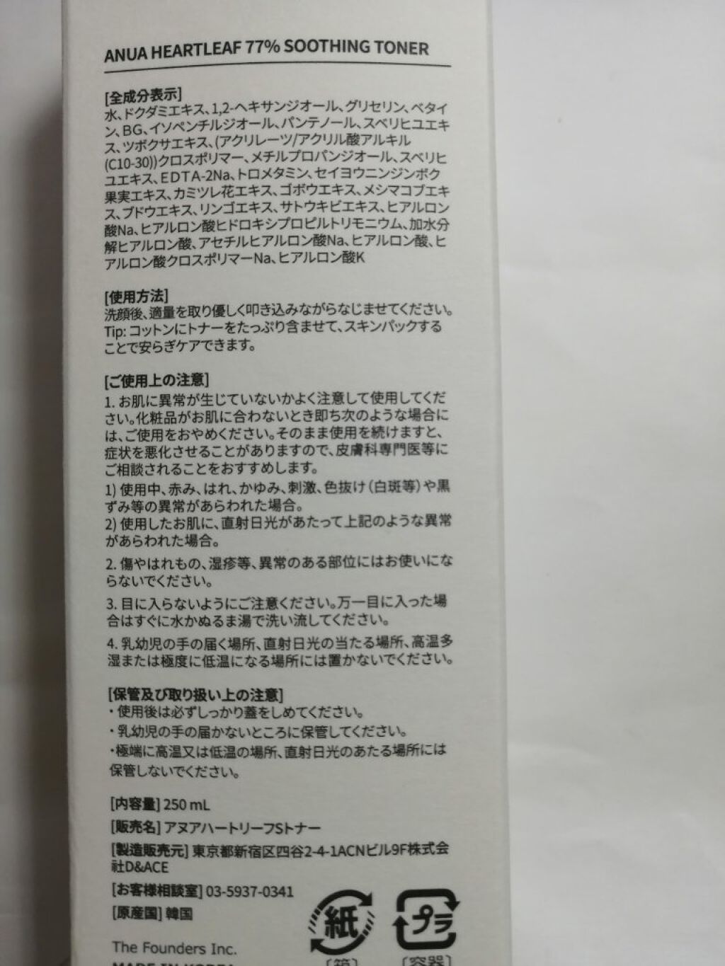 商品詳細情報Anua ドクダミ 77 スージングトナー