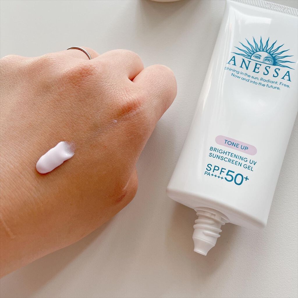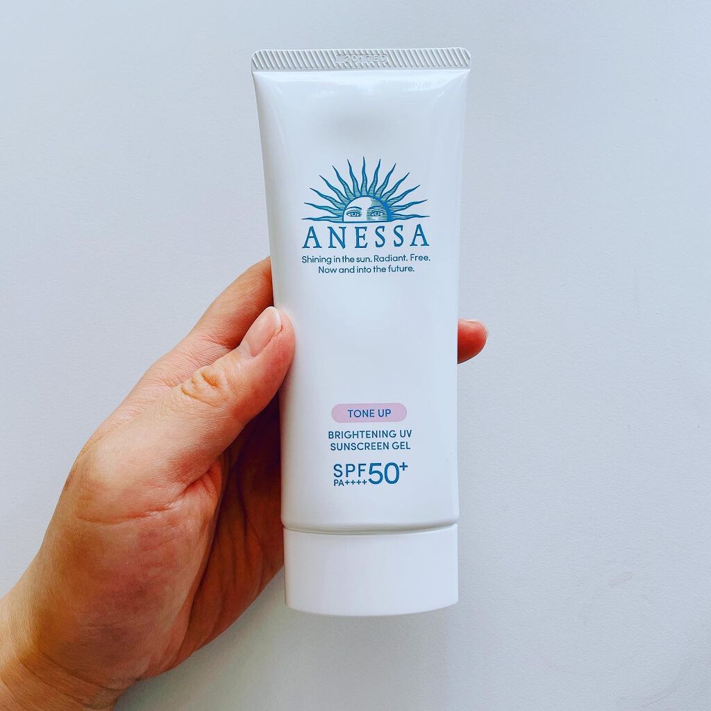 アネッサブライトニングUVジェルNトーンアップ効果が期待できる日焼け止め✨ほんのりピンクがかったジェルが肌に透明感をプラスSPF50+、PA++++なので日焼け対策は強め!顔やボディに使えますジェルというよりはクリームのような見た目伸びはあま...