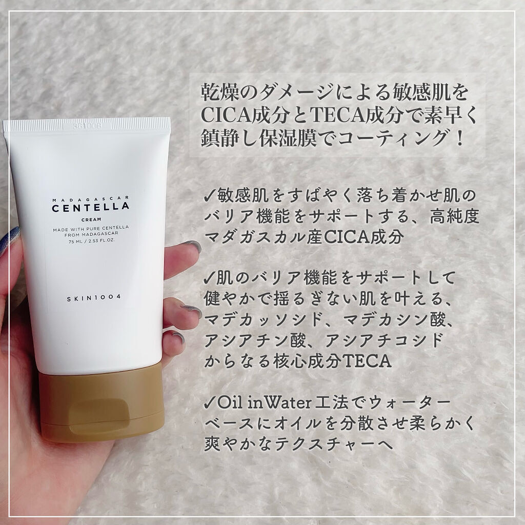 【使った商品】SKIN1004センテラクリーム(75ml3410円)【商品の特徴】とにかく伸びが良い!ベタつかない!ハーブ系の香り付き【テクスチャ】さっぱり水分感油分を感じない【良いところ】保湿力が高いところ肌にうるおいを与えてくれるところ#...