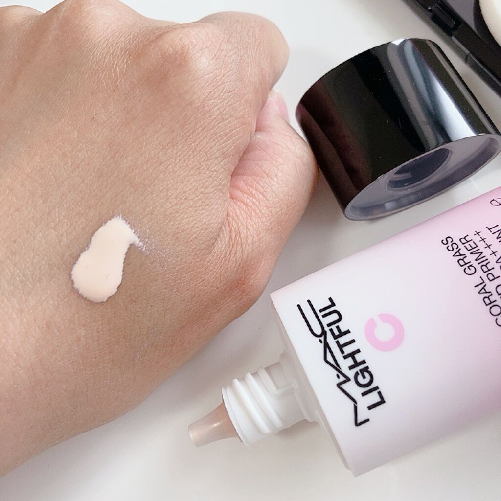 保湿感・ツヤ感・密着感◎ 【M・A・C/ライトフル C+ティンティッド プライマーSPF45】 緩めのテクスチャーで伸びが良いです◎ SPF45/PA+++++で紫外線対策もできてオススメ👾 保湿感があり、乾燥を感じにくくてお気に入り🫶🏻 ツヤ感が出て綺麗な仕上がりイメージ