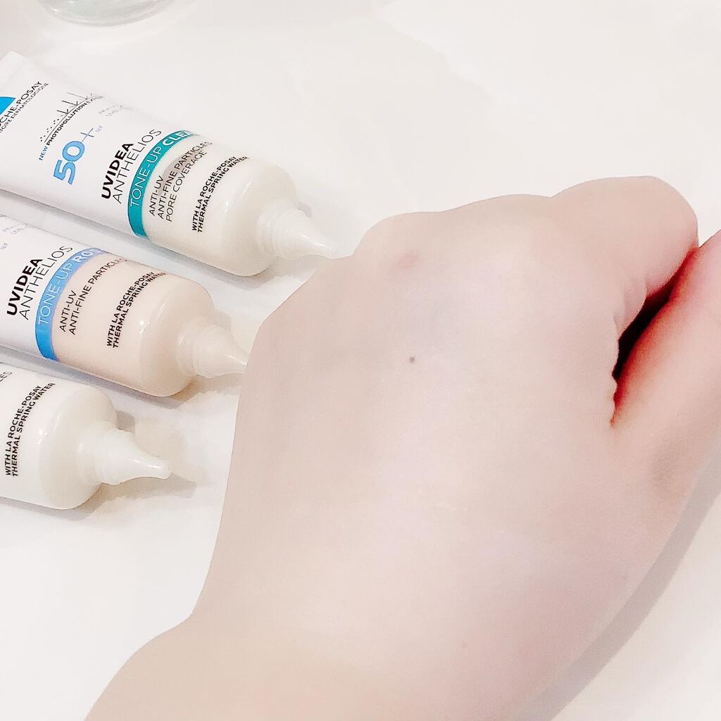 保湿力高めの下地が大好きなのでラロッシュポゼの下地はお気に入りでよく使います✨ かなりトーンアップします🤍自分は肌が黄ぐすみしやすいのでこれくらいトーンアップしてくれた方が時間がたった時にちょうどよくなります✨ 1番のお気に入りはローズです🌹肌から浮かない程よいトーンアップとほんのり血色感がよくなる所が大好きです🥰